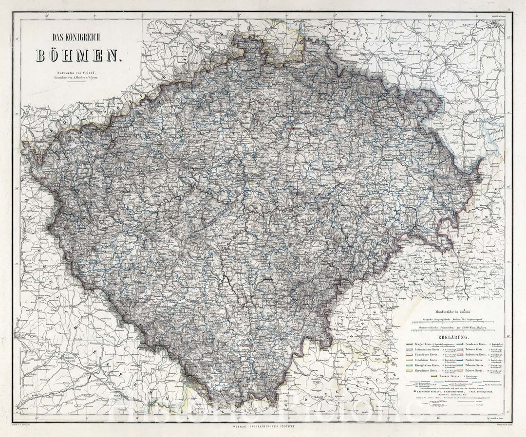 Historic Map : Czech Republic, Prague Region (Czech Republic) Das Konigreich Bohmen. 1865, Vintage Wall Art