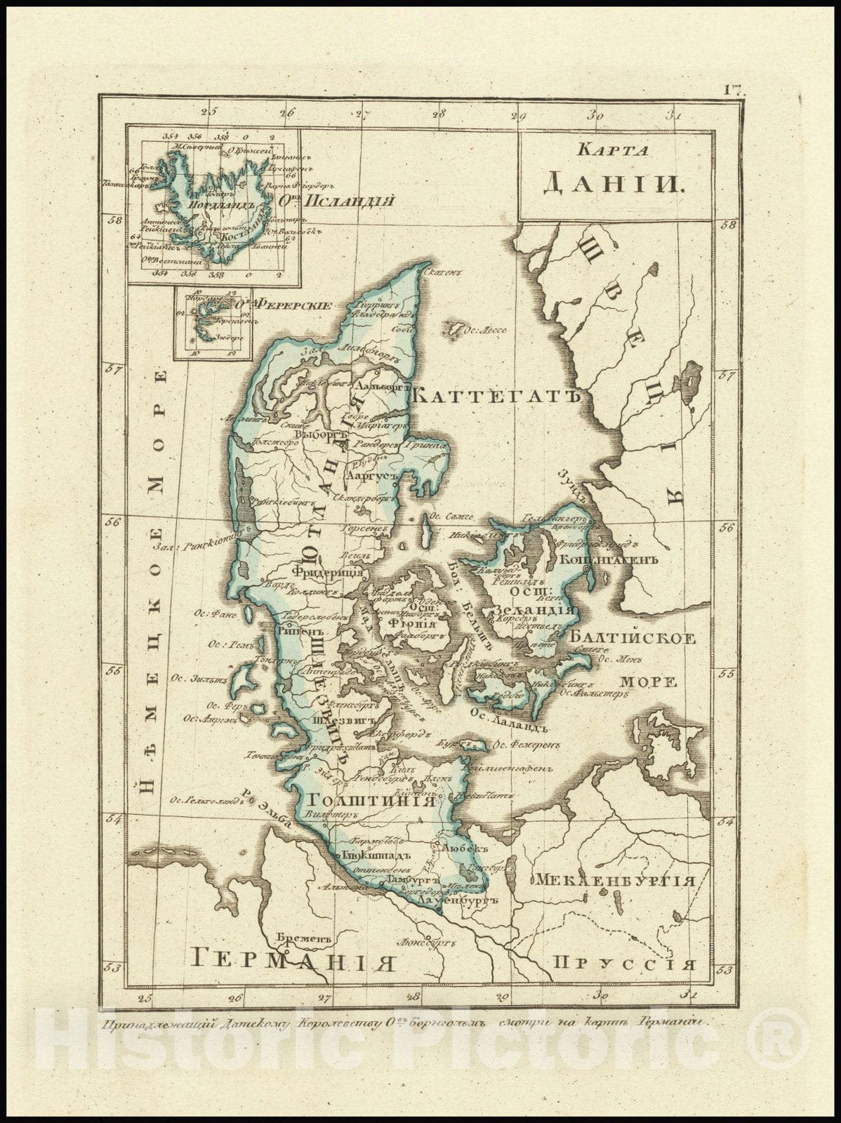 Historic Map : Denmark, 1836, Vintage Wall Art