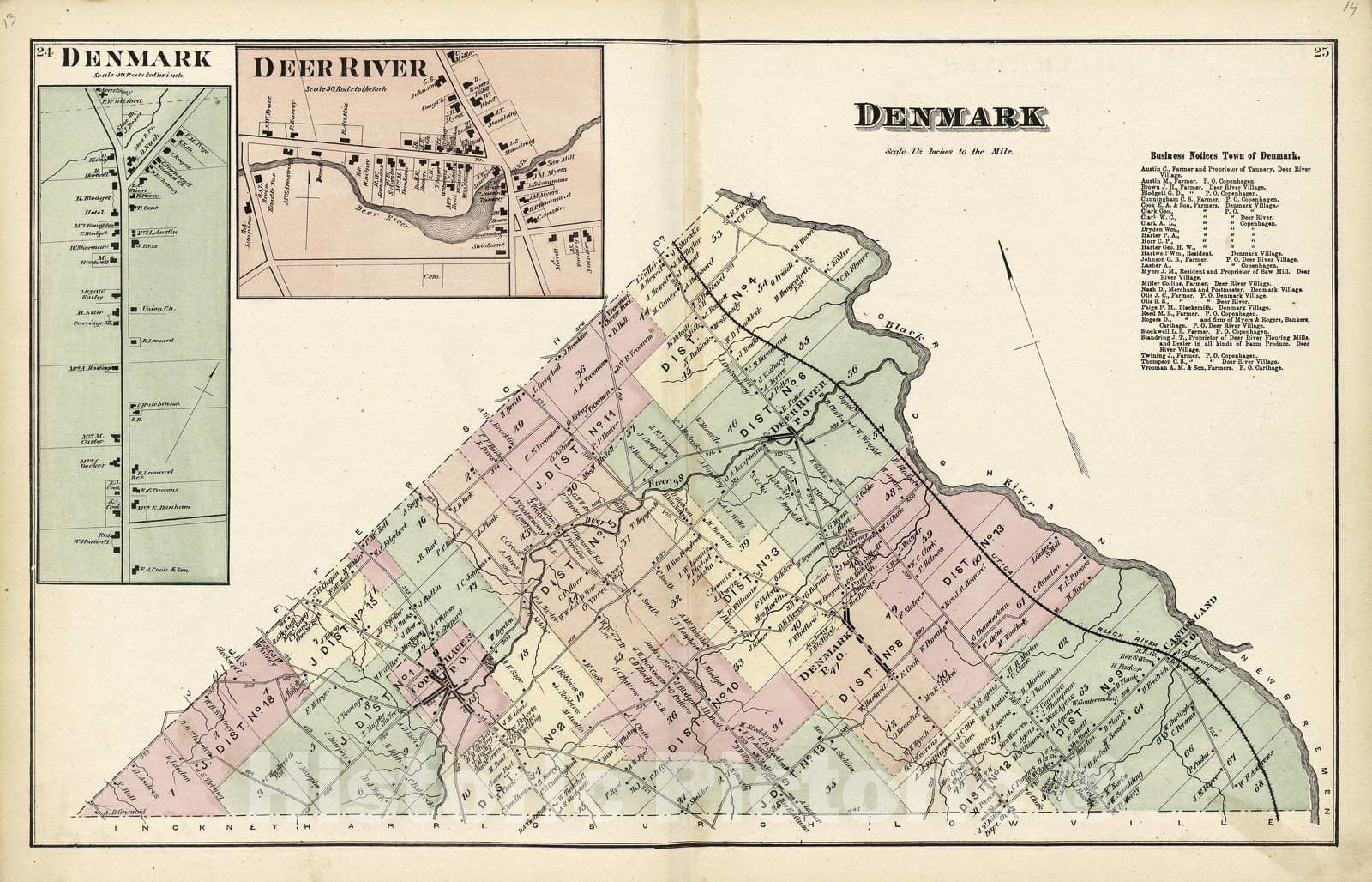 Historic 1875 Map - Atlas of Lewis Co, New York - Denmark; Deer River - Atlas of Lewis County, New York
