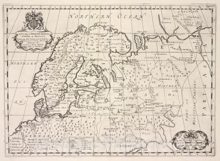 Historic Map - 1700 Denmark, Norway, Sweden, Moscow, Shewing Their Present General Divisions, Cheif Cities Or Towns, Rivers, Mountains - Vintage Wall Art