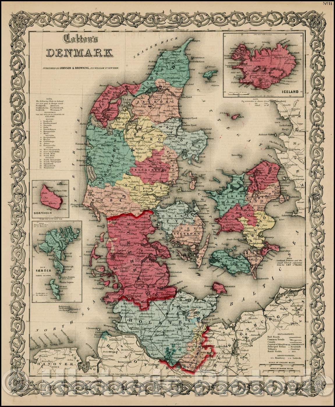 • .Historic Map - Colton's Denmark, 1860, Joseph Hutchins Colton - Vintage Wall Art