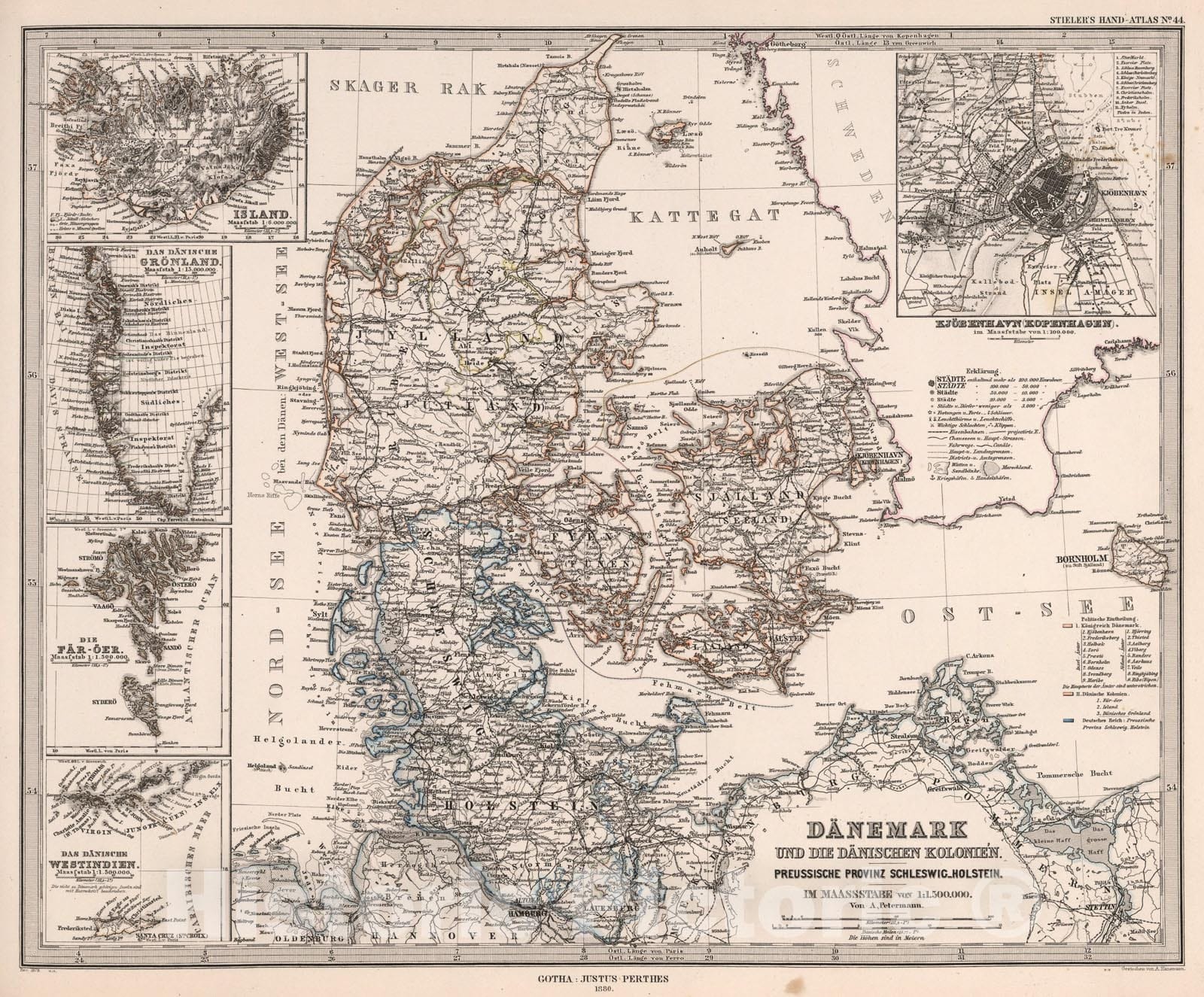 Historic Map : Daenemark und die Daenischen Kolonien. (Denmark and Dutch Colonies)., 1880, Vintage Wall Art