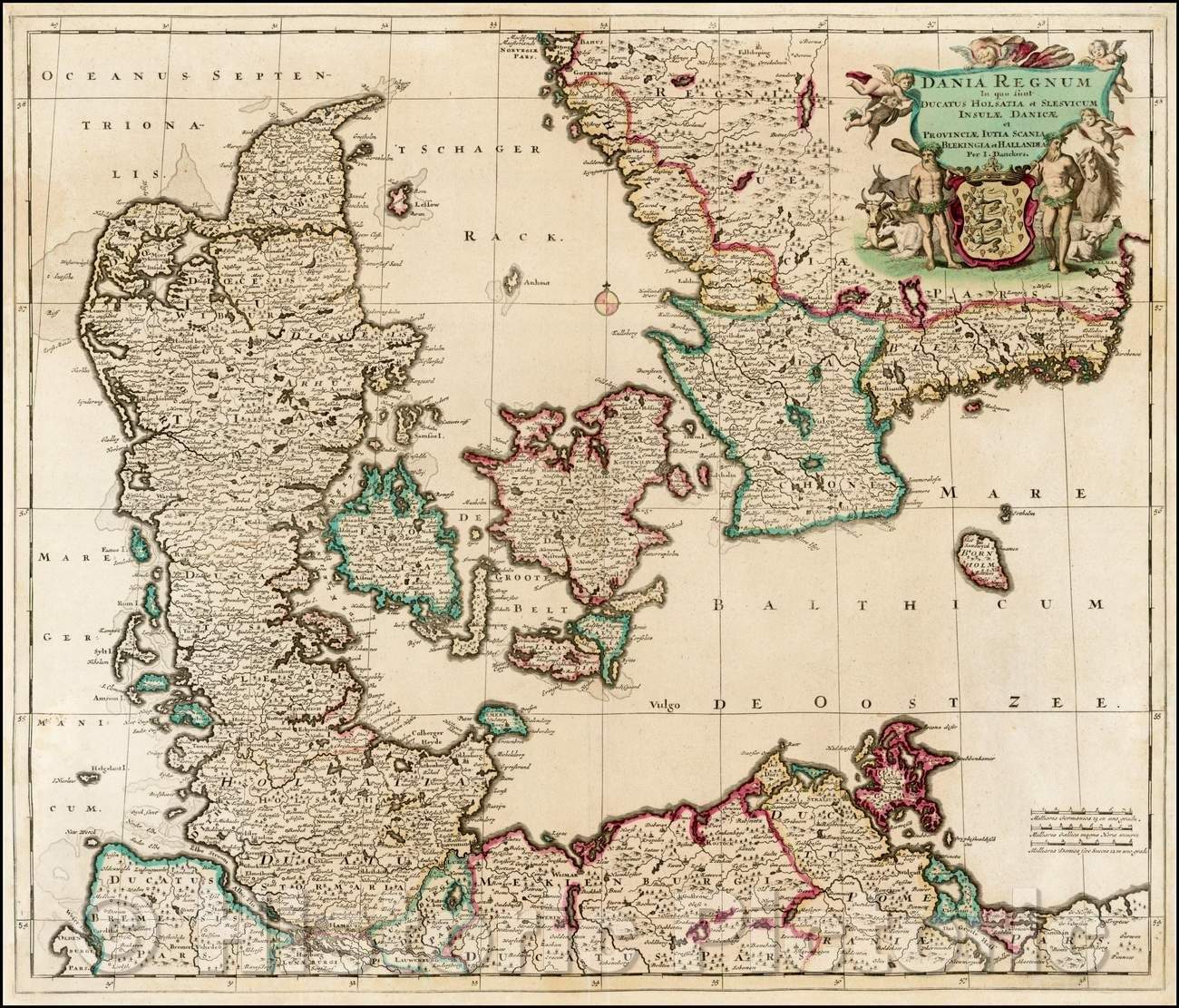 Historic Map - Dania Regnum In quo sunt Ducatus Holsatia et Slesvicum Insulae Danicae et Provinciae/Justus Danckert's Map of Denmark, Sweden and Norway, 1690 - Vintage Wall Art