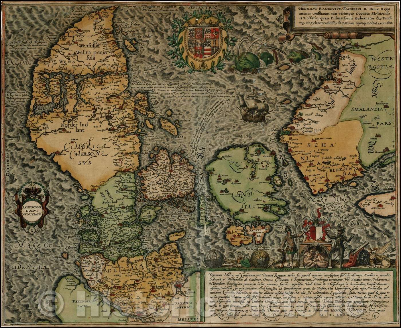 Historic Map - Danorum Marca, vel Cimbricum, aut Daniae Regnum ./Danish mark or Cimbricum or the Kingdom of Denmark, 1588, Georg Braun - Vintage Wall Art