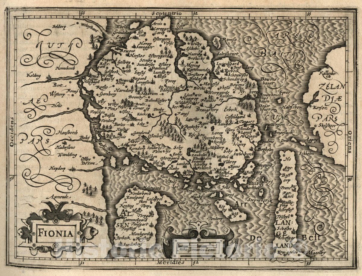Historic Map : Denmark, Fioni. (to accompany) Atlas Minor Gerardi Mercatoris, 1607 Atlas , Vintage Wall Art
