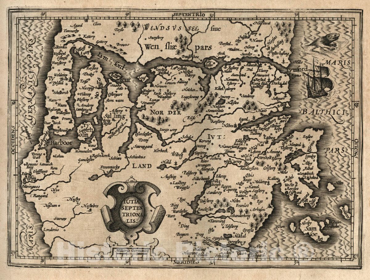 Historic Map : Denmark, Iutia Septentrionalis. (to accompany) Atlas Minor Gerardi Mercatoris, 1607 Atlas , Vintage Wall Art