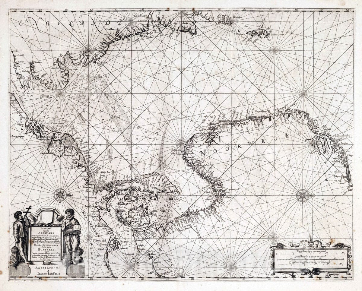 • Historic Map : Denmark, North Sea 1650 Pascaart vande Noort-see, Tabula Hydrographica Oceani Borealis. , Vintage Wall Art