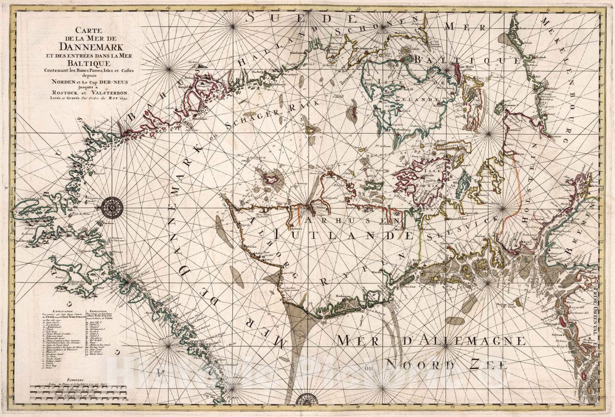 Historic Map : Denmark, Denmark Sea Carte de la Mer de Dannemark et des Entrees Dans la Mer Baltique, 1693 Chart , Vintage Wall Art