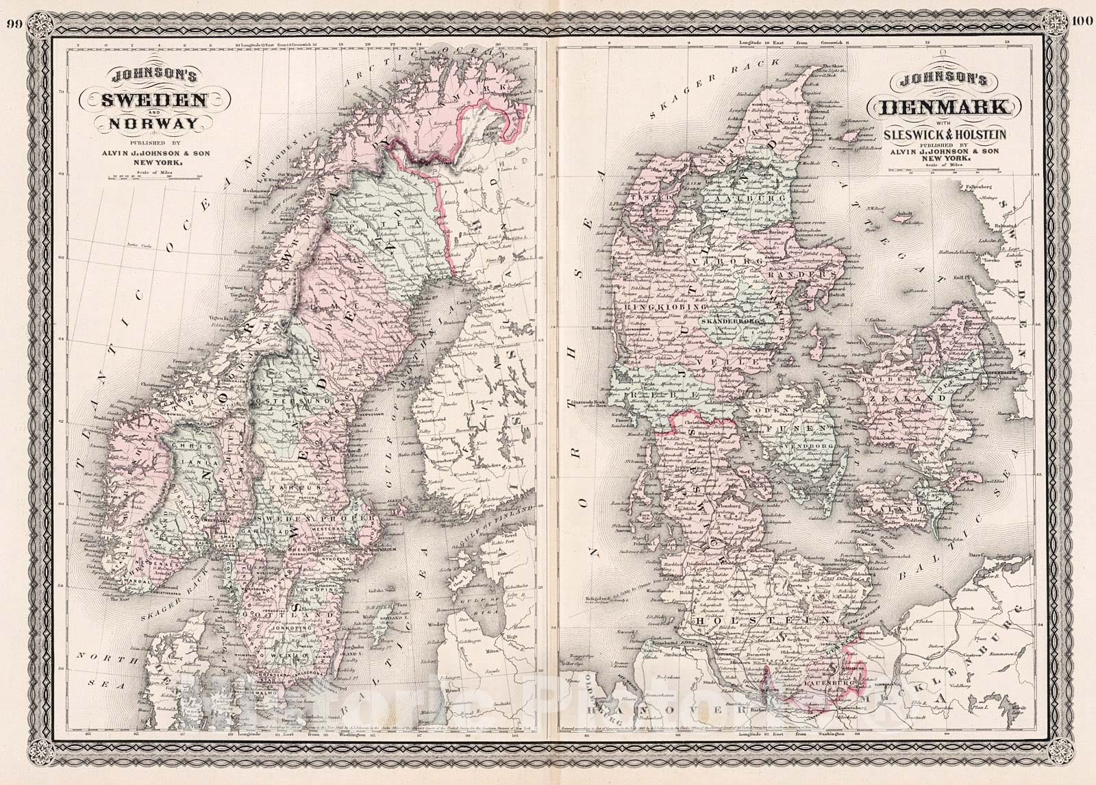 Johnson's Sweden and Norway. Johnson's Denmark with Sleswick and Holstein, 1880