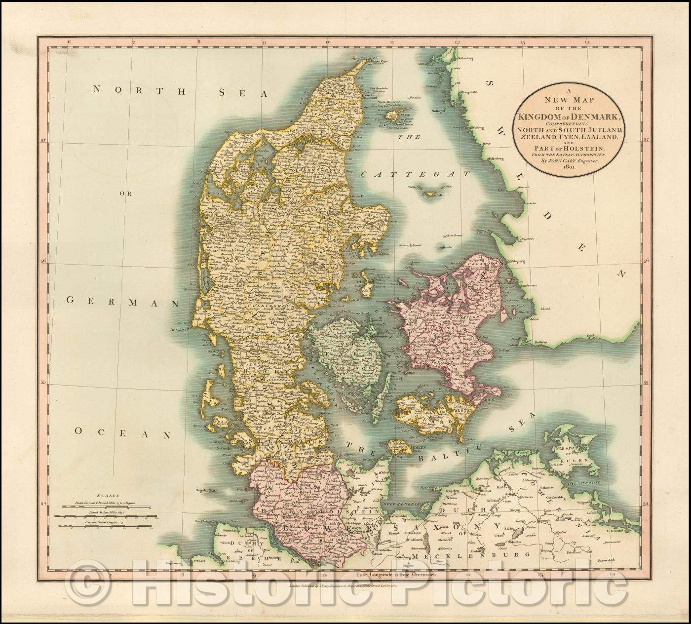 A New Map of the Kingdom of Denmark, Comprehending North and South Jutland, Zeeland, Fyen, Laaland and part of Holstein , 1801, John Cary