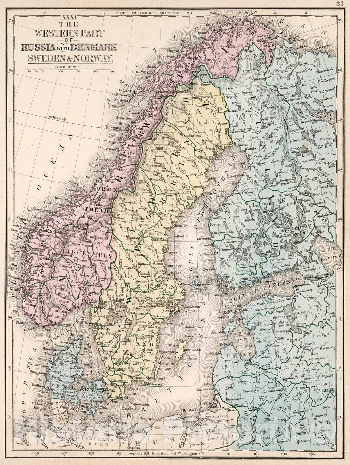 Historic Map : Map No. XXXI. The Western part of Russia with Denmark, Sweden & Norway, 1865, Vintage Wall Decor