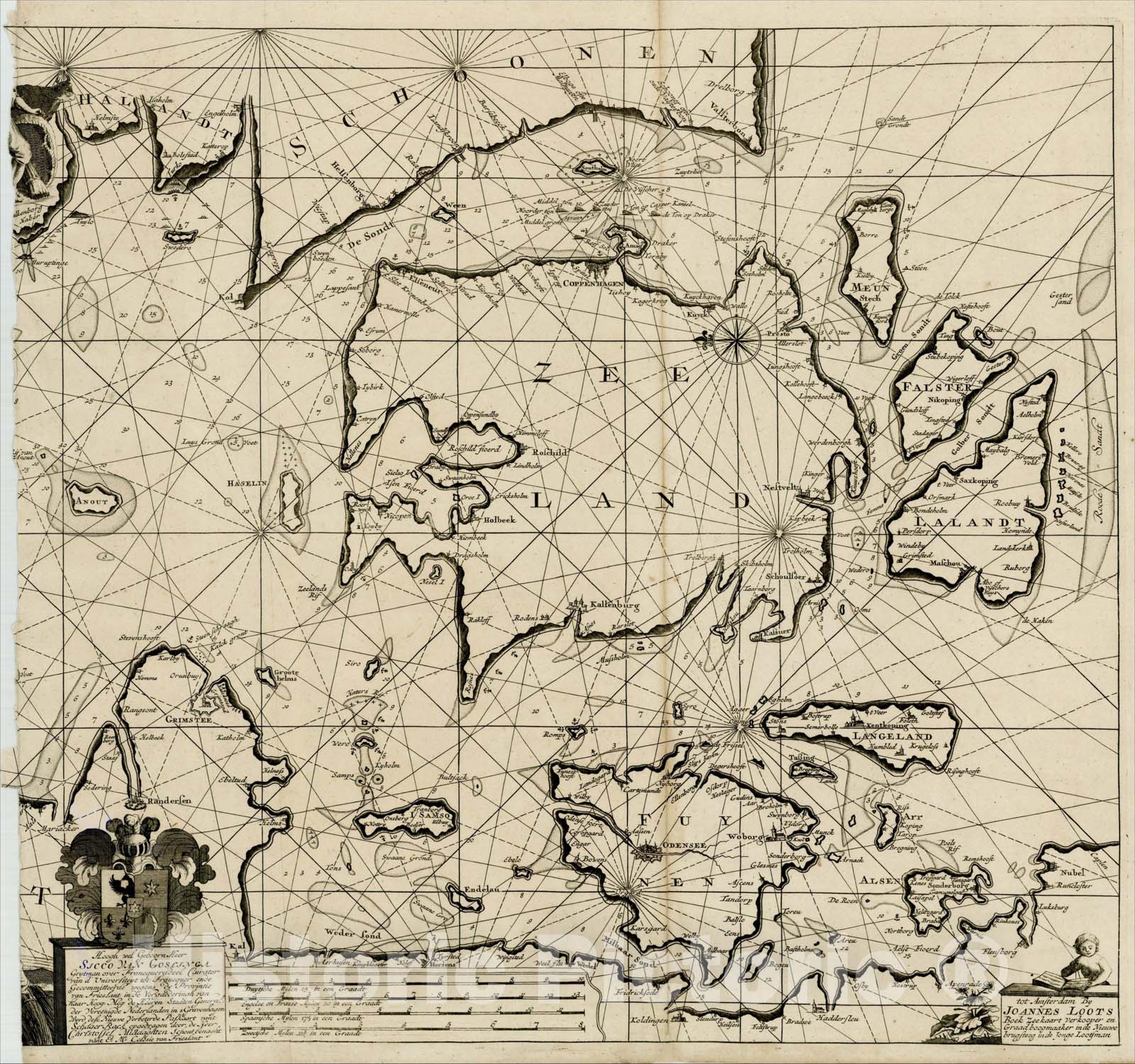 Historic Map : [Sea Chart Fragment -- Zeeland and Coast of Denmark and Sweden], c1700, Johannes Loots, Vintage Wall Art