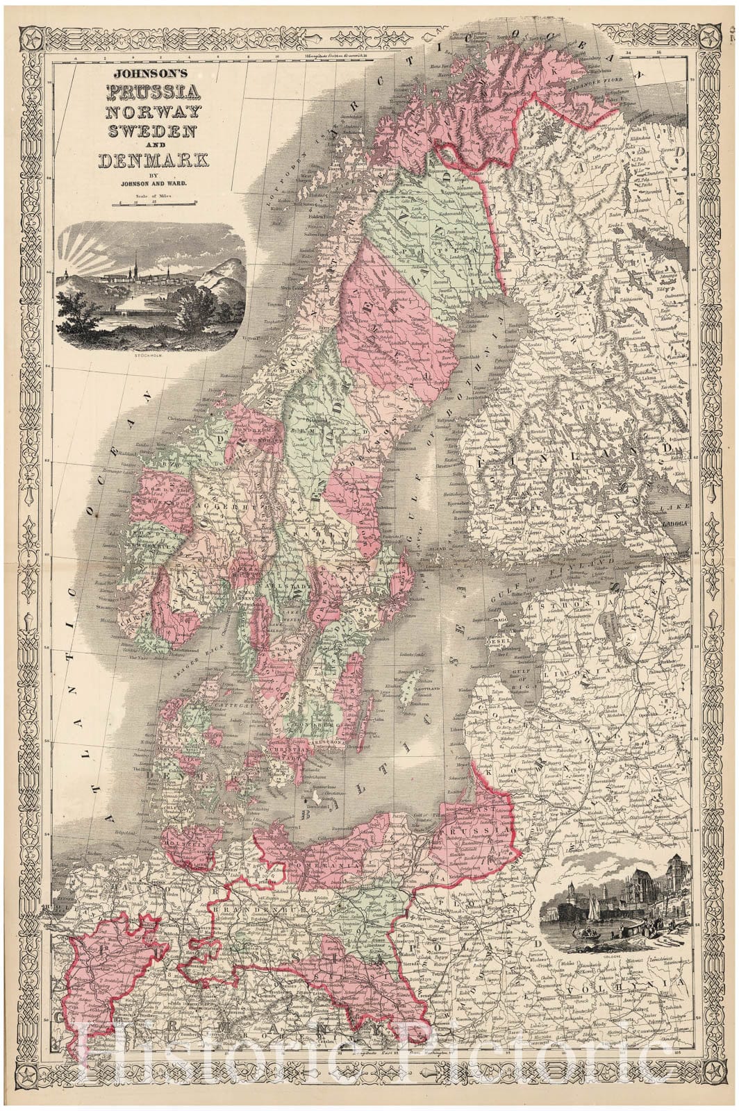 Historic Map : Prussia and Scandinavia "Norway, Sweden, Denmark", Johnson, 1865, Vintage Wall Art