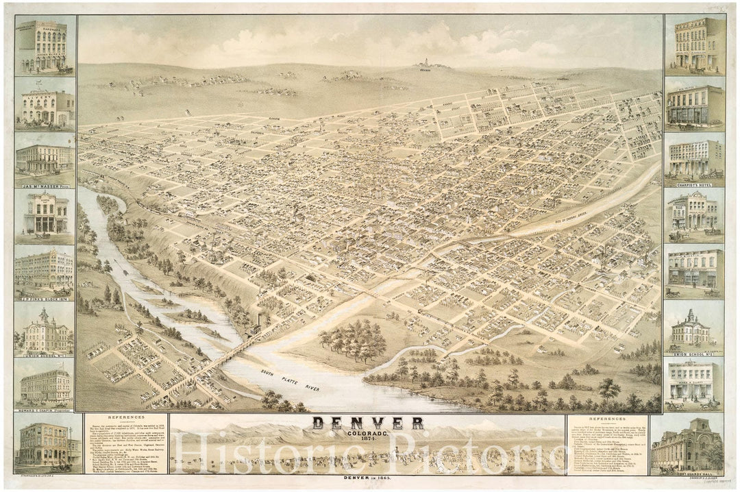 Historic 1874 Map - Denver, Colorado, 1874 - Denver (Colo.) - Vintage Wall Art