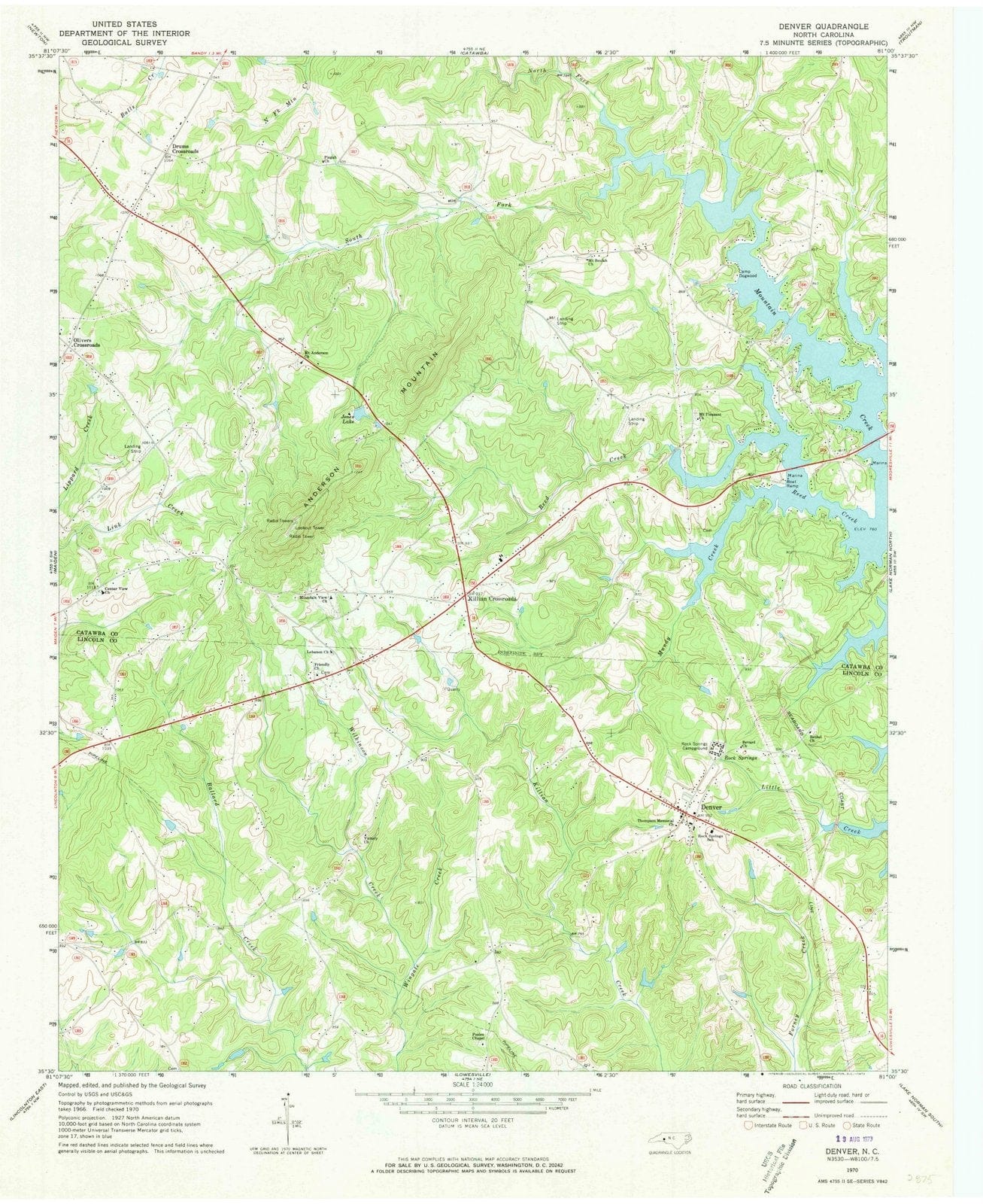 1970 Denver, NC - North Carolina - USGS Topographic Map