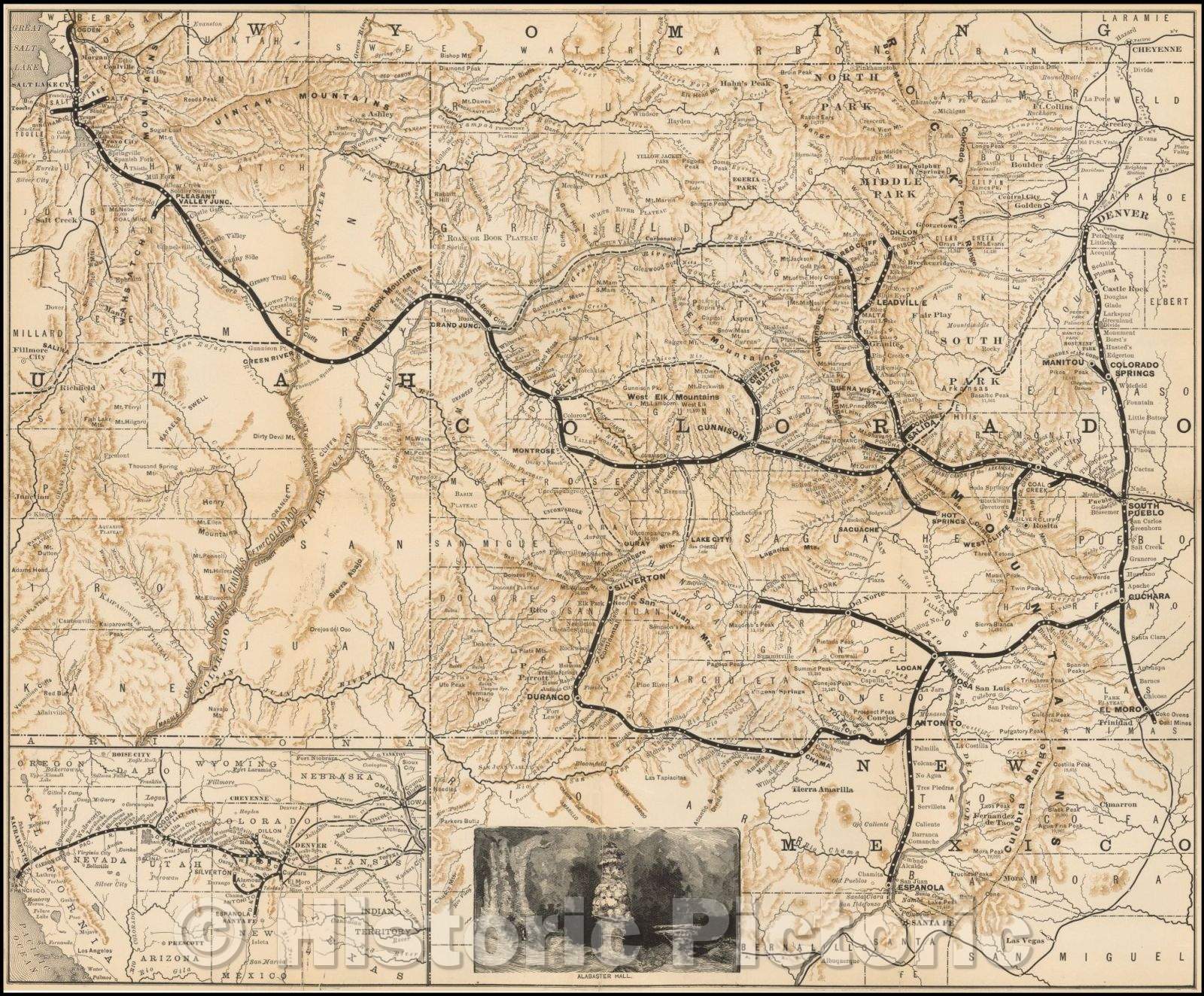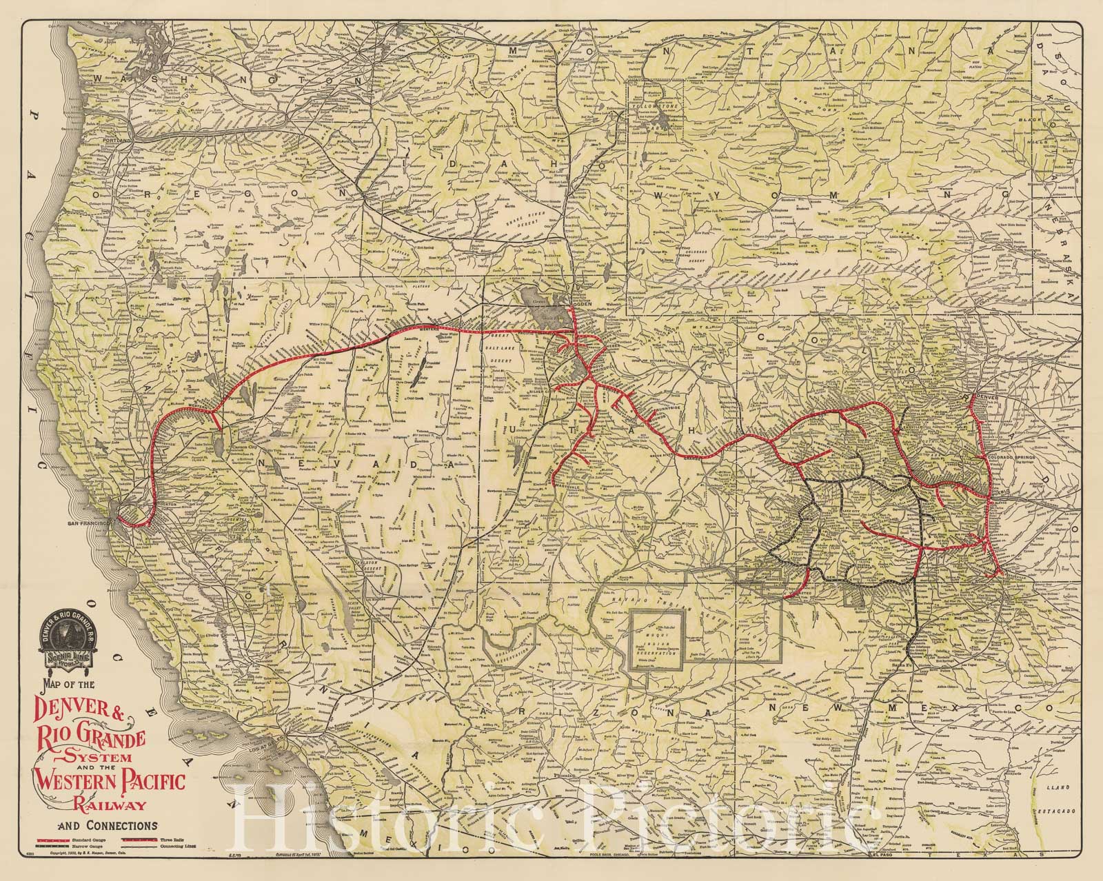 • .Historic Map - Denver and Rio Grande Railroad System, 1882, Denver & Rio Grande RR - Vintage Wall Art