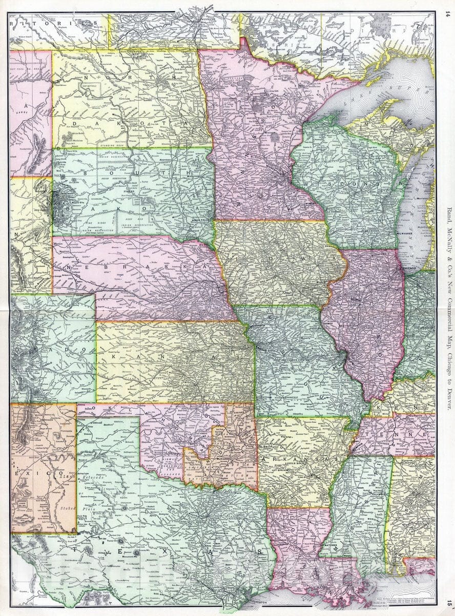 • Historic Map : National Atlas - 1903 Commercial Map, Chicago to Denver. - Vintage Wall Art