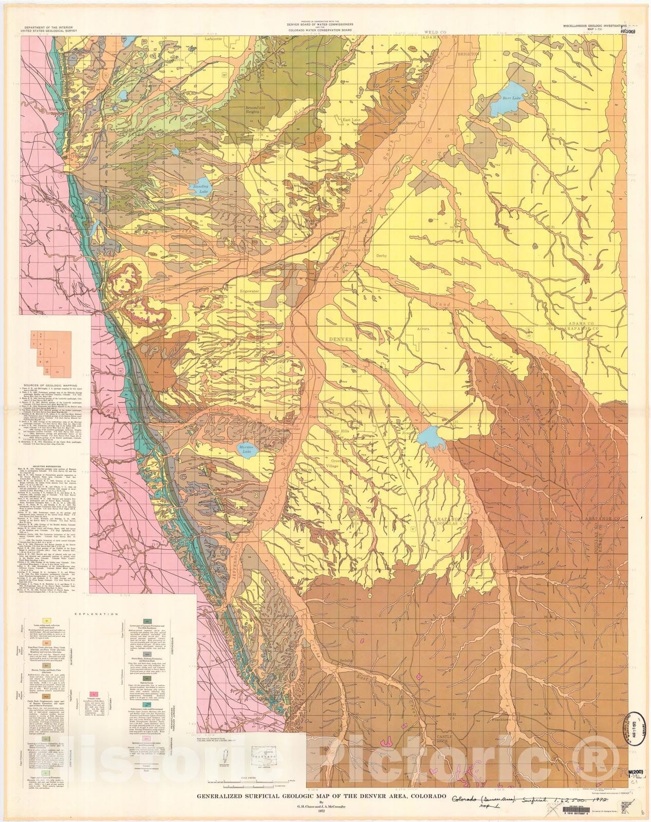 Map : Generalized surficial geologic map of the Denver area, Colorado, 1972 Cartography Wall Art :