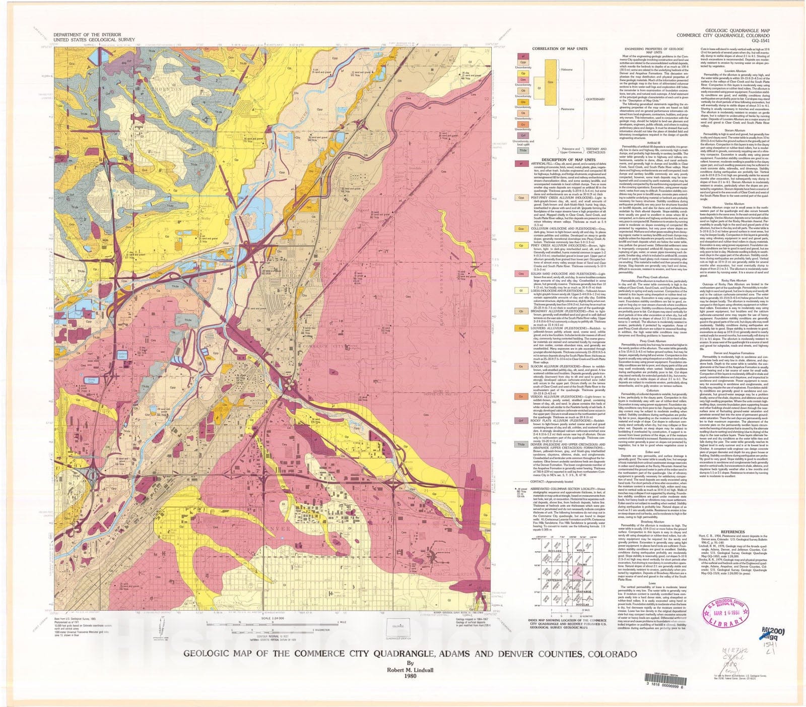 Map : Geologic map of the Commerce City quadrangle, Adams and Denver Counties, Colorado, 1980 Cartography Wall Art :