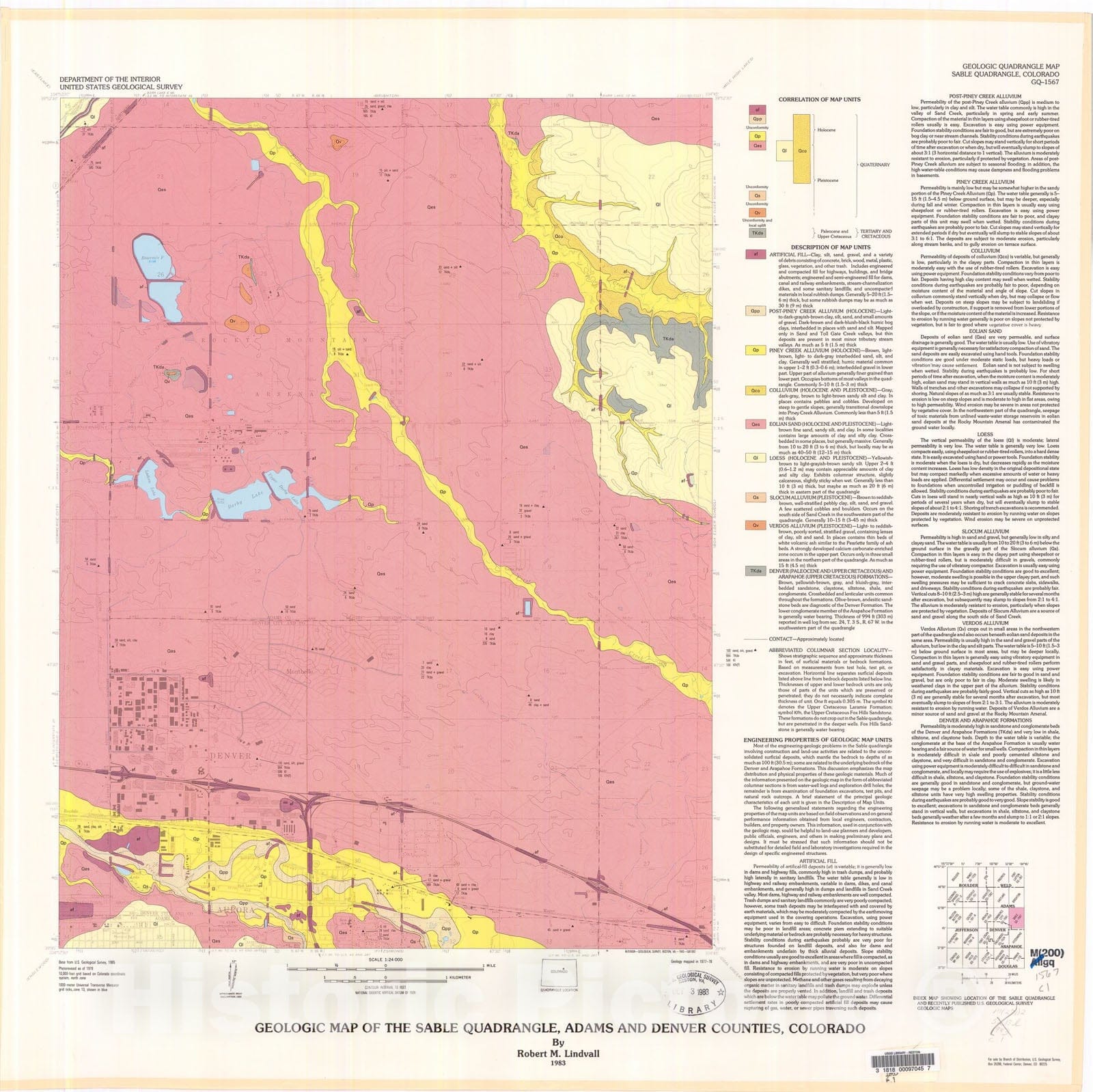 Map : Geologic map of the Sable quadrangle, Adams and Denver Counties, Colorado, 1983 Cartography Wall Art :