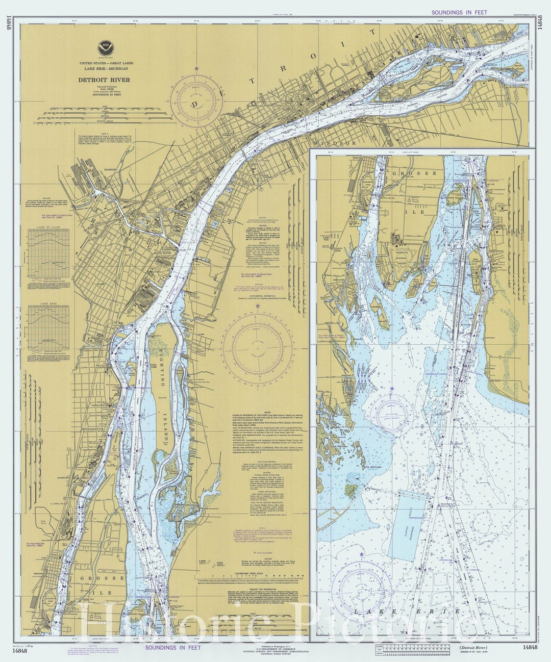 Historic Nautical Map - Detroit River, 1980 NOAA Chart - Michigan (MI) - Vintage Wall Art
