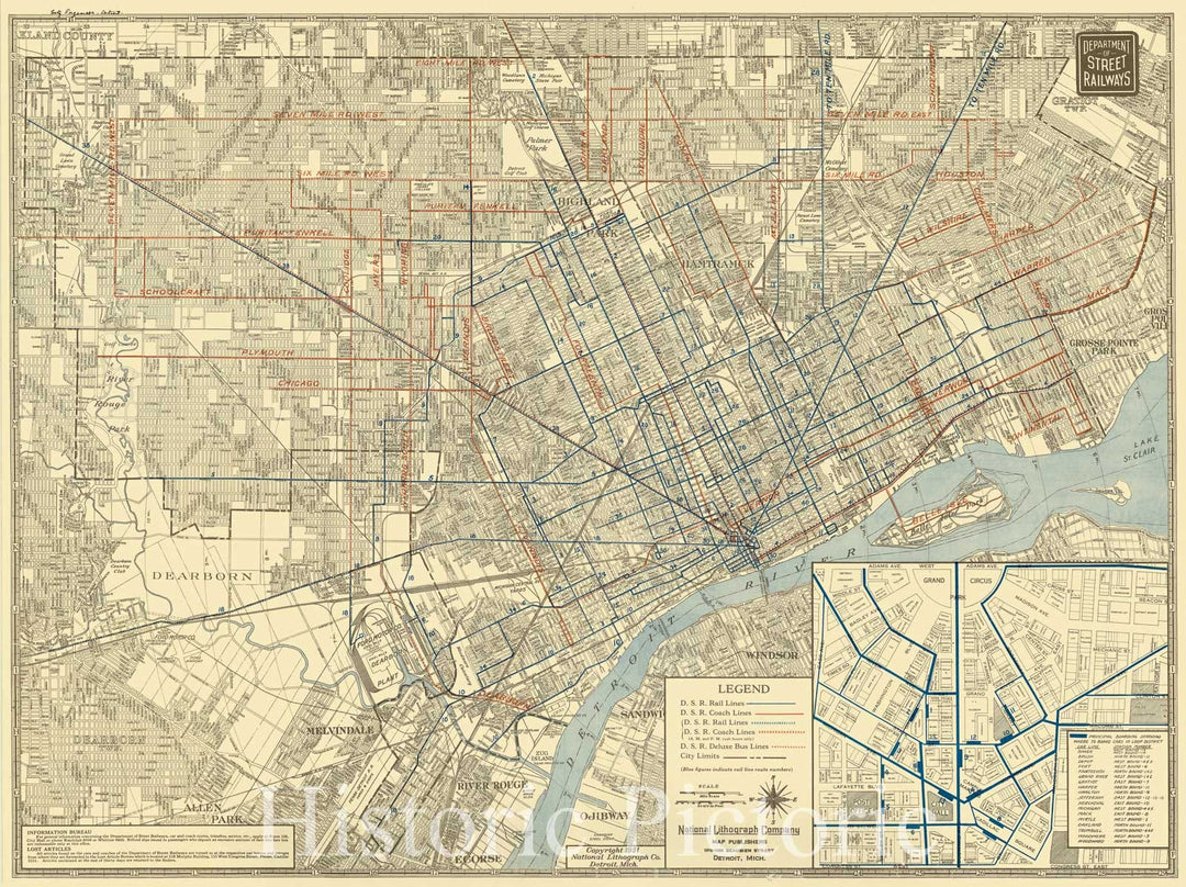 Map : Detroit, Michigan 1931, City of Detroit official map of Detroit's transportation system : showing the routes of all street car and motor coach lines