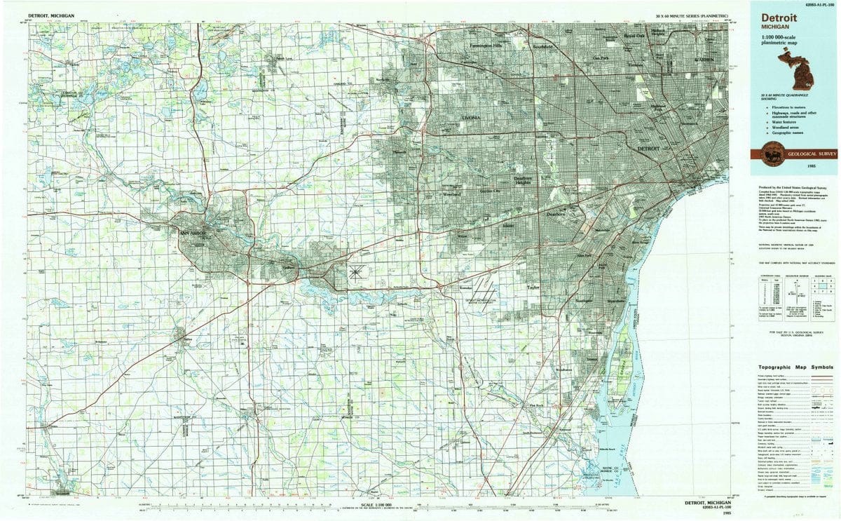 1985 Detroit, MI - Michigan - USGS Topographic Map