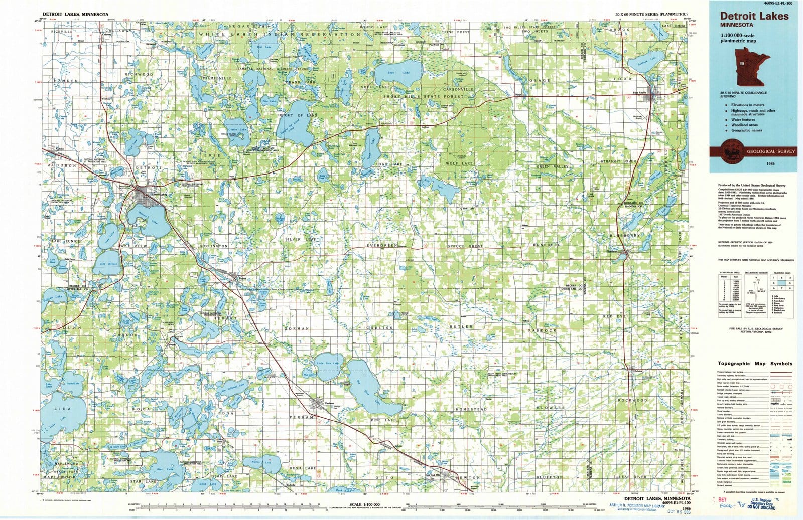 • 1986 Detroit Lakes, MN - Minnesota - USGS Topographic Map