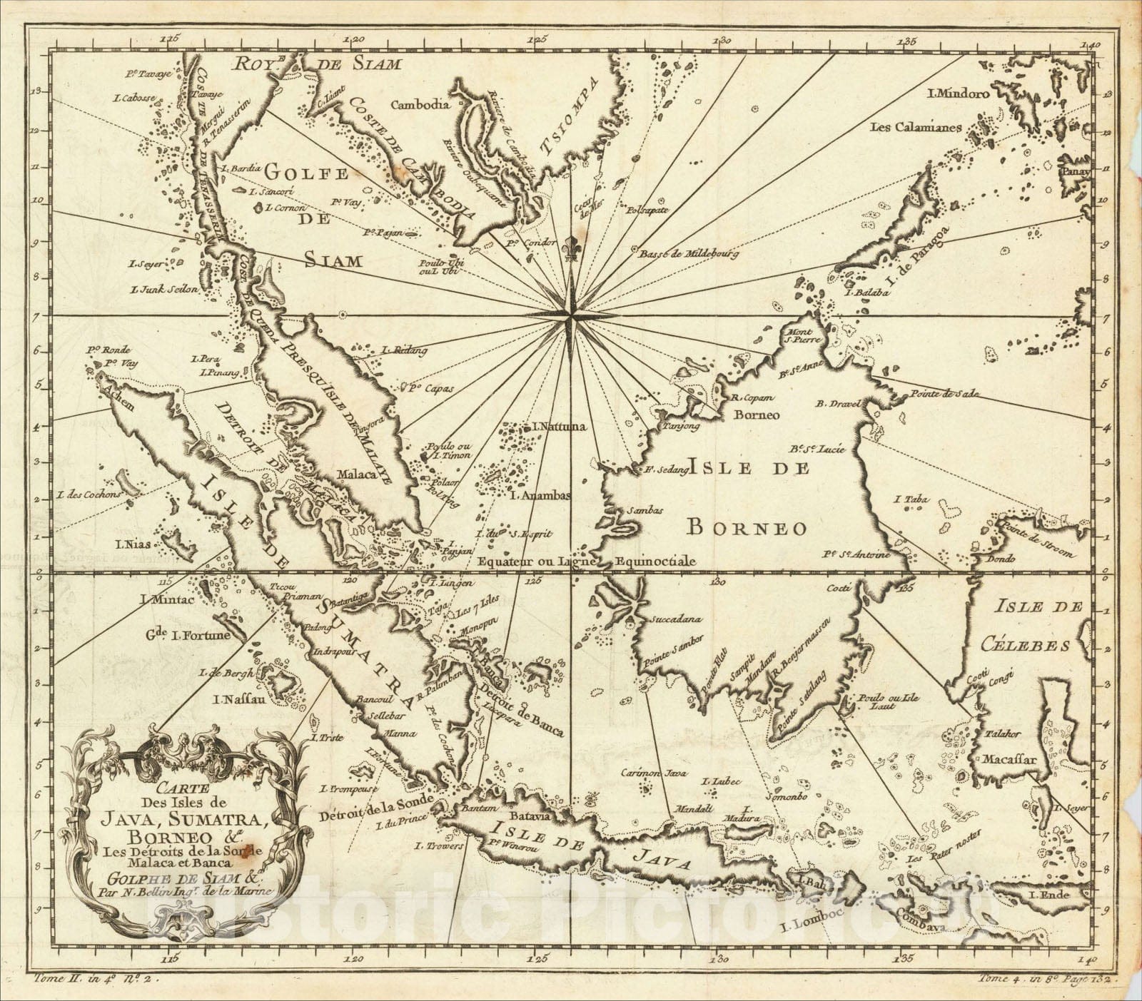 Carte Des Isles De Java, Sumatra, Borneo &.a Les Detroits de la Sonde Malaca et Banca &c., 1764, Jacques Nicolas Bellin
