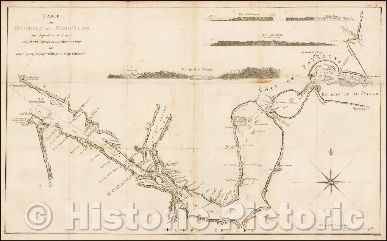 Historic Map - Carte du Detroit de Magellan dans laquelle on a Insere les Observations/Chart of the Straits of Magellan, 1774, James Cook - Vintage Wall Art