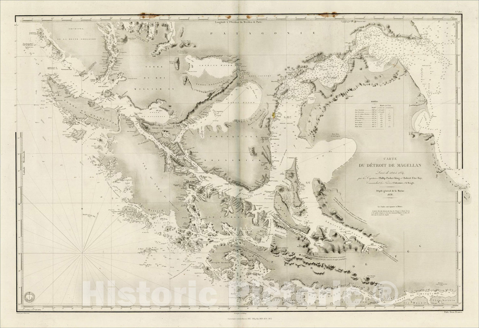 Historic Map : Carte Du Detroit De Magellan, par les Capitains Phillip Parker King et Robert Fitz Roy, 1858, 1858, Depot de la Marine, Vintage Wall Art