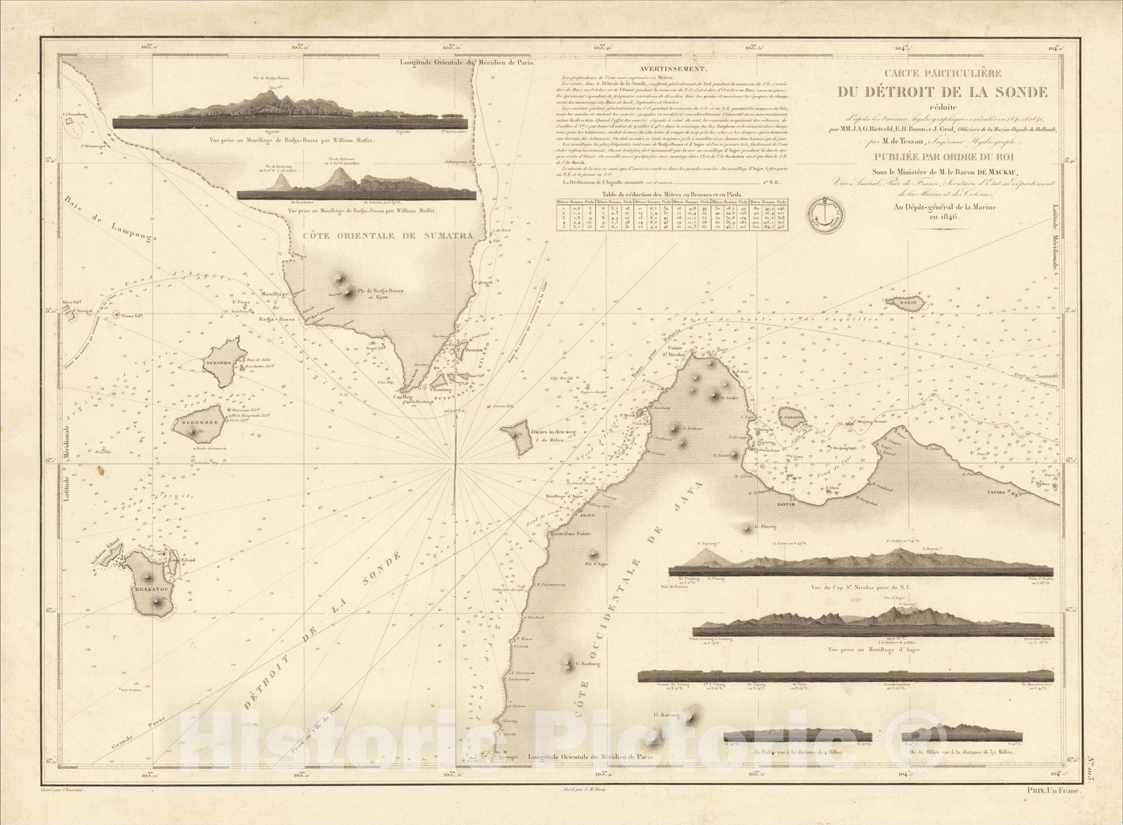 Historic Map : Carte Particuliere Du Detroit De La Sonde reduite d'apres les travaux hydrographiques, 1846, Depot de la Marine, Vintage Wall Art