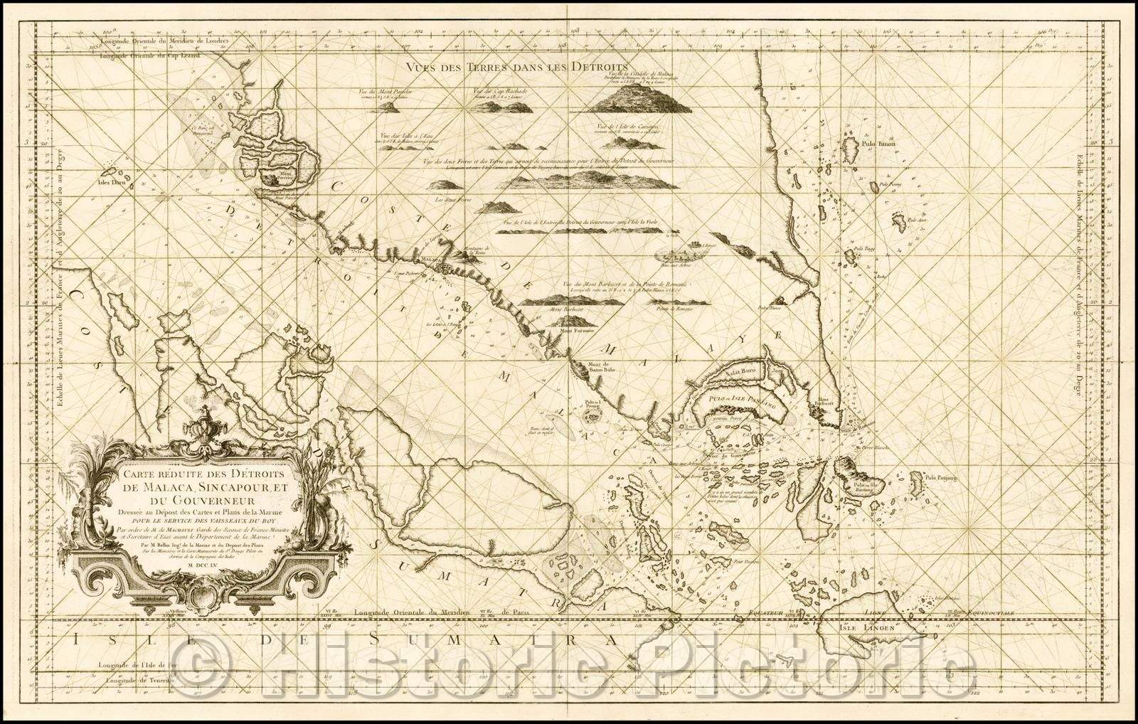 • .Historic Map - Carte Reduite Des Detroits De Malaca, Sincapour, Et Gouverneur, 1755, Jacques Nicolas Bellin v1