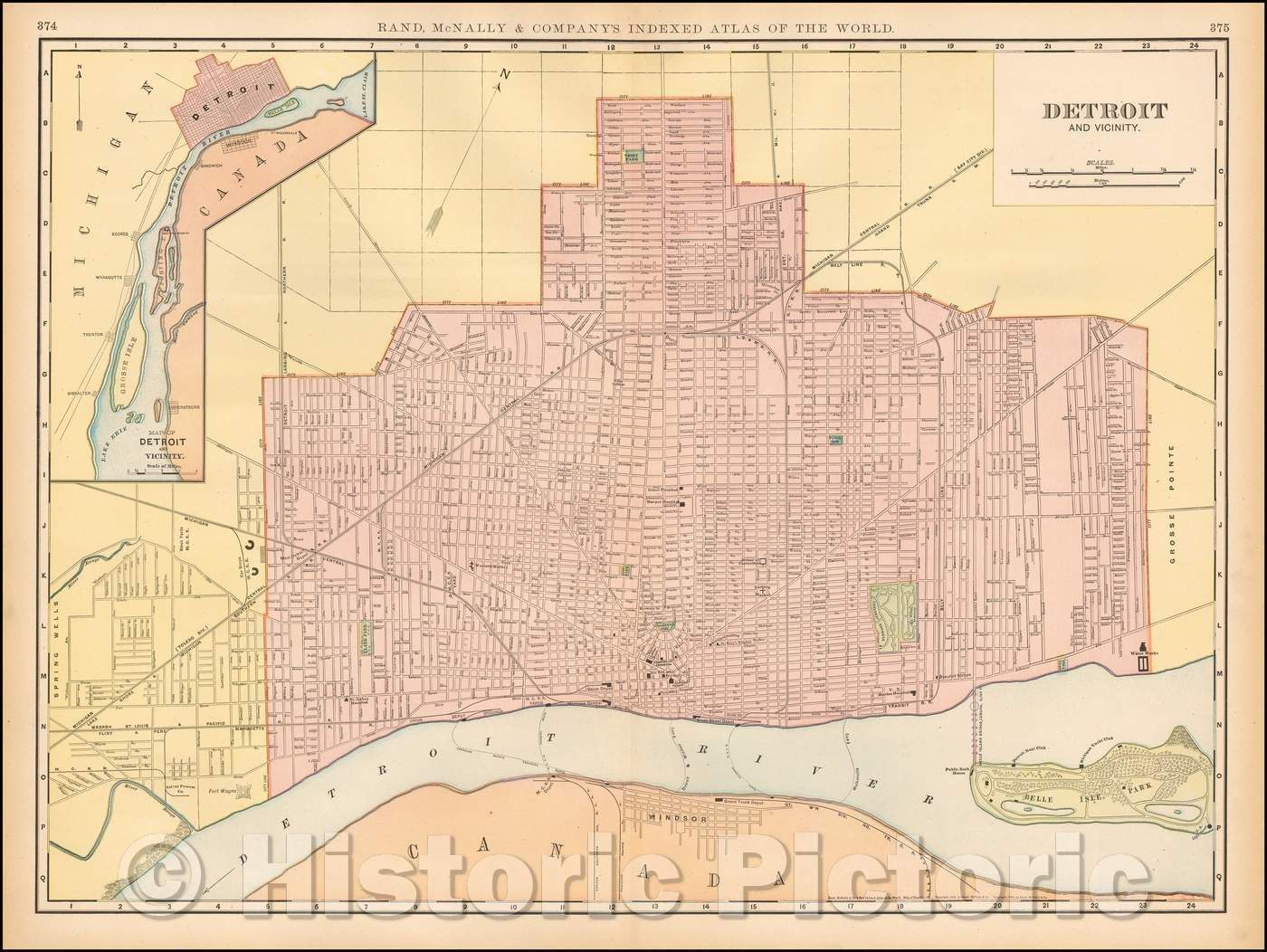 Historic Map - Detroit and Vicinity, 1910, Rand McNally & Company v2