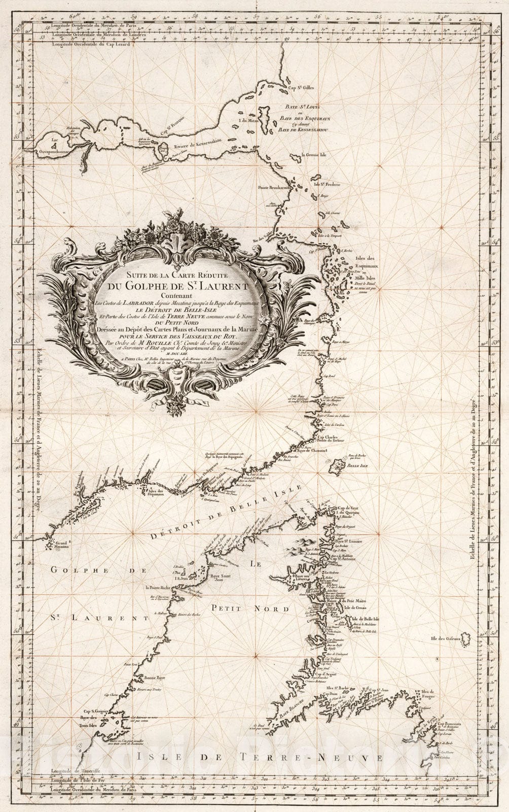 Historic Map - Suite de la Carte Reduite du Golphe de St. Laurent Contenant Les Costes de Labrador depuis Mecatina jusqu'a la Baye des Esquimaux Le Detroit, 1753 v2