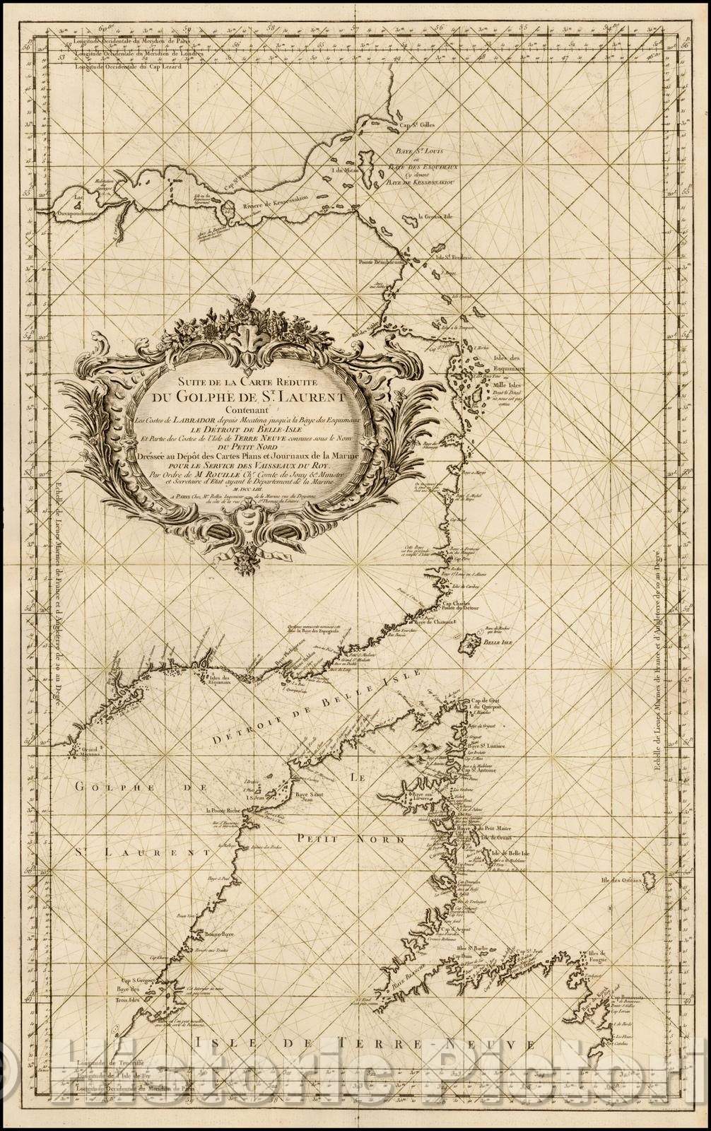 Historic Map - Suite de la Carte Reduite du Golphe de St. Laurent Contenant Les Costes de Labrador depuis Mecatina jusqu'a la Baye des Esquimaux Le Detroit, 1753 v1