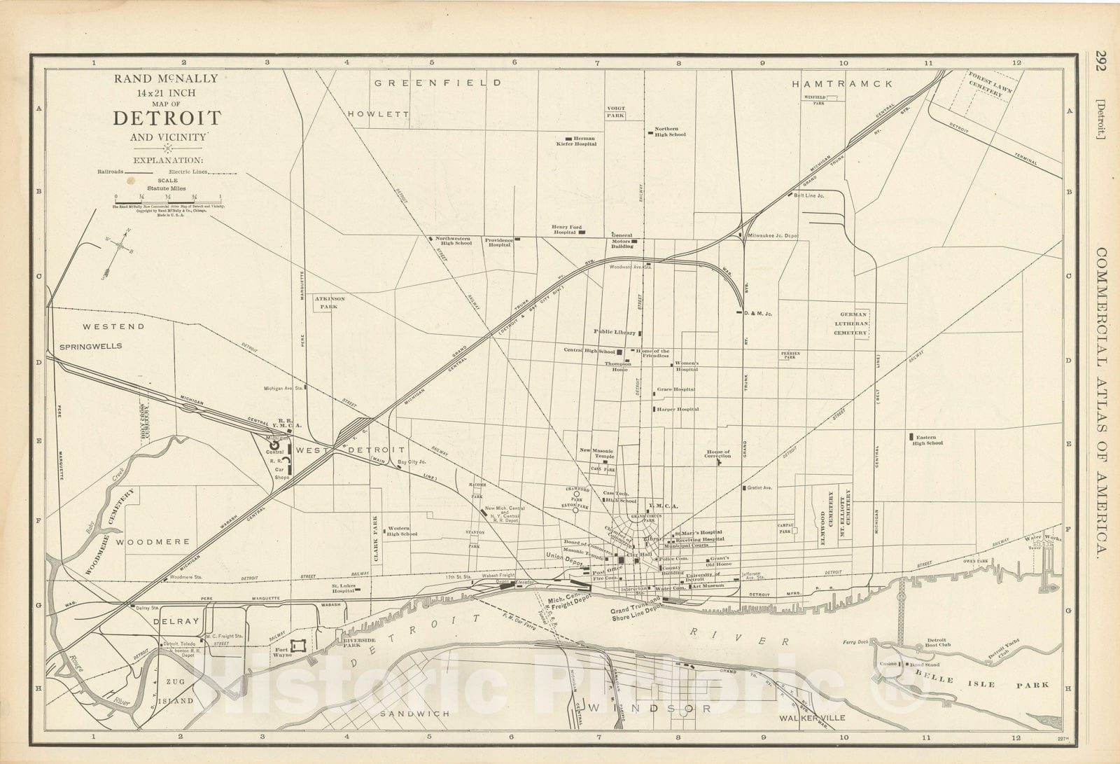 Historic Map : Commercial Atlas of America, 56th Edition, Detroit 1925 , Vintage Wall Art