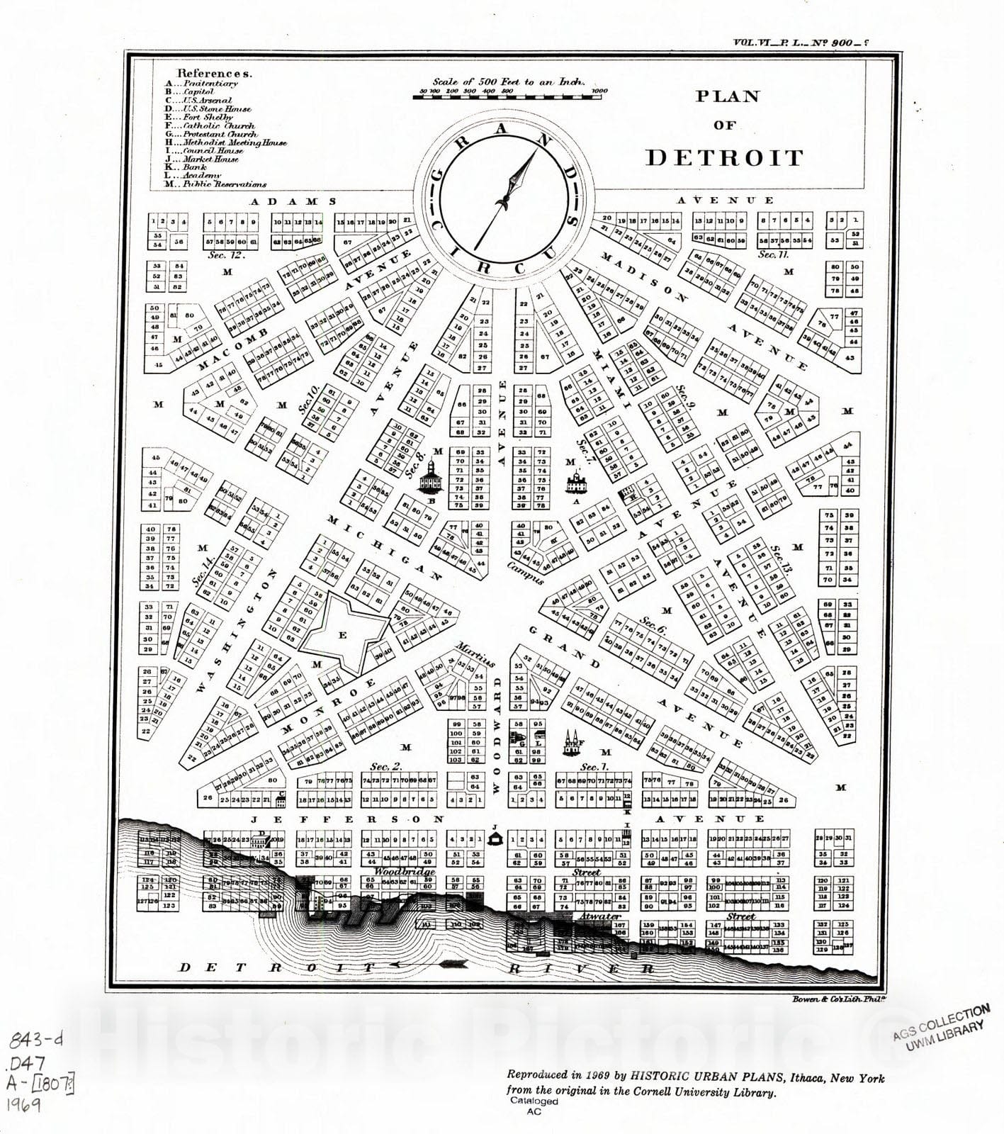 Map : Detroit 1807, Plan of Detroit, Antique Vintage Reproduction