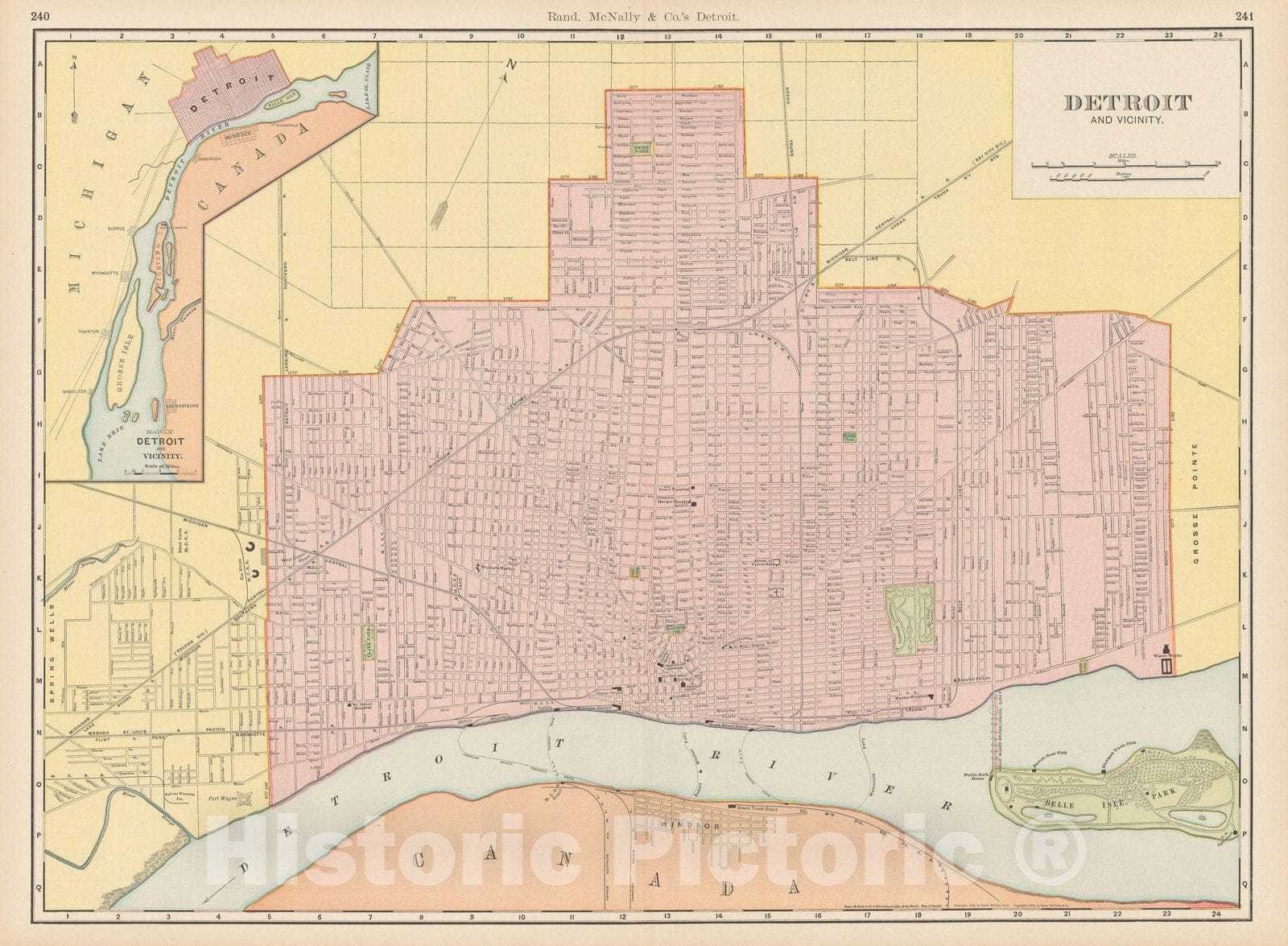 • Historic Map : Detroit 1903 , Rand McNally Business Atlas , Vintage Wall Art