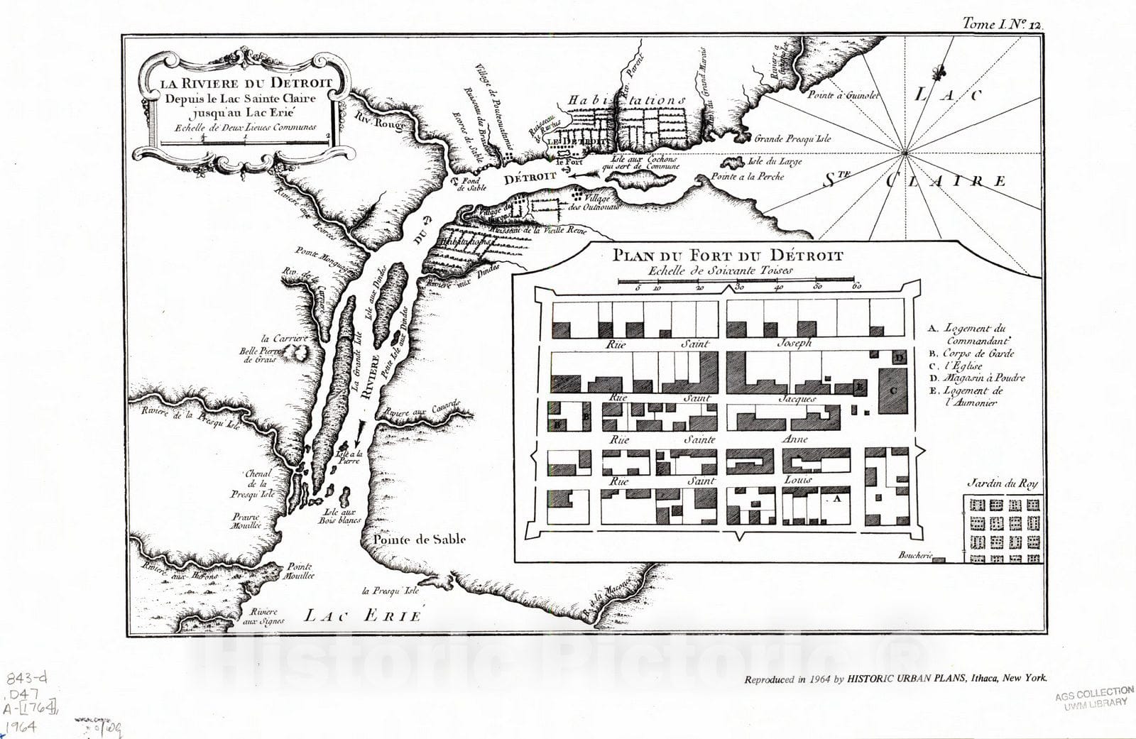 Map : Detroit 1964, La Riviere du De?troit depuis le Lac Sainte Claire jusqu'au Lac Erie?, Antique Vintage Reproduction