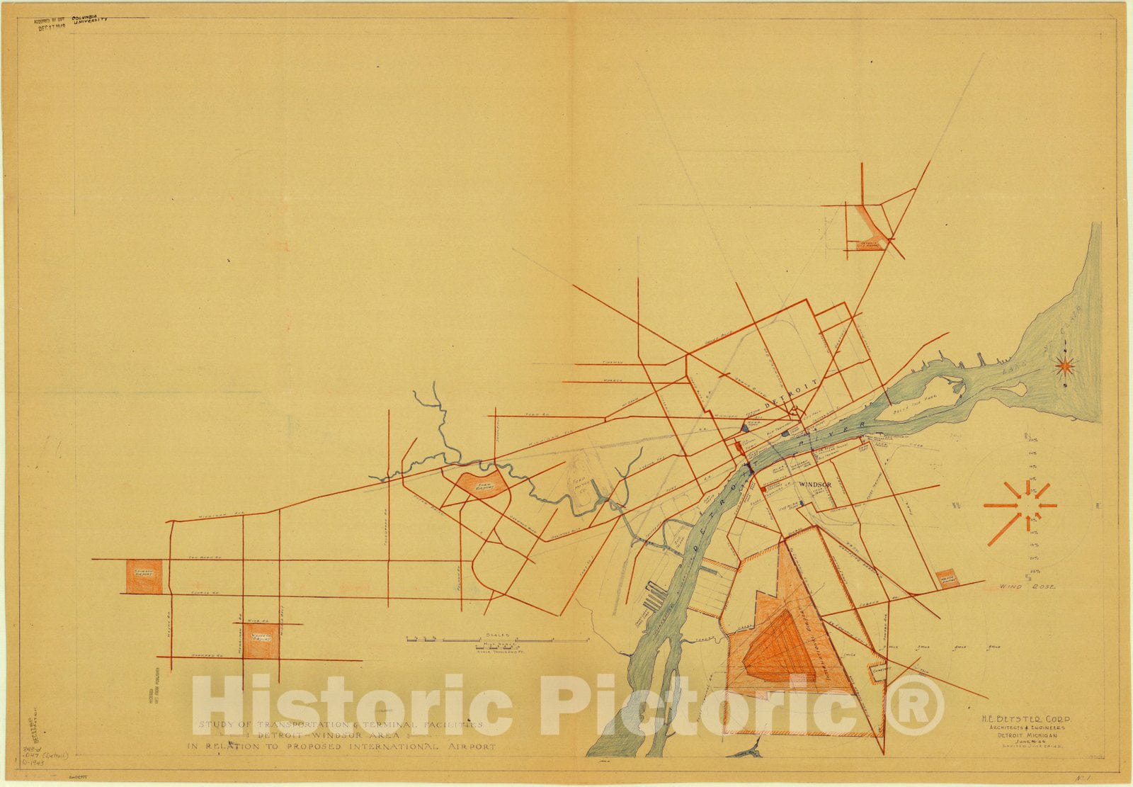 Map : Detroit, Michigan 1943, Study of transportation & terminal facilities : Detroit, Antique Vintage Reproduction