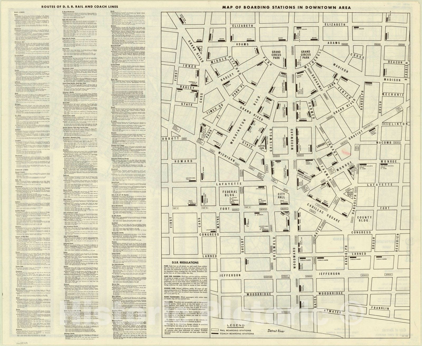 Map : Detroit, Michigan 1948 2, DSR transportation guide of 1948 , Antique Vintage Reproduction