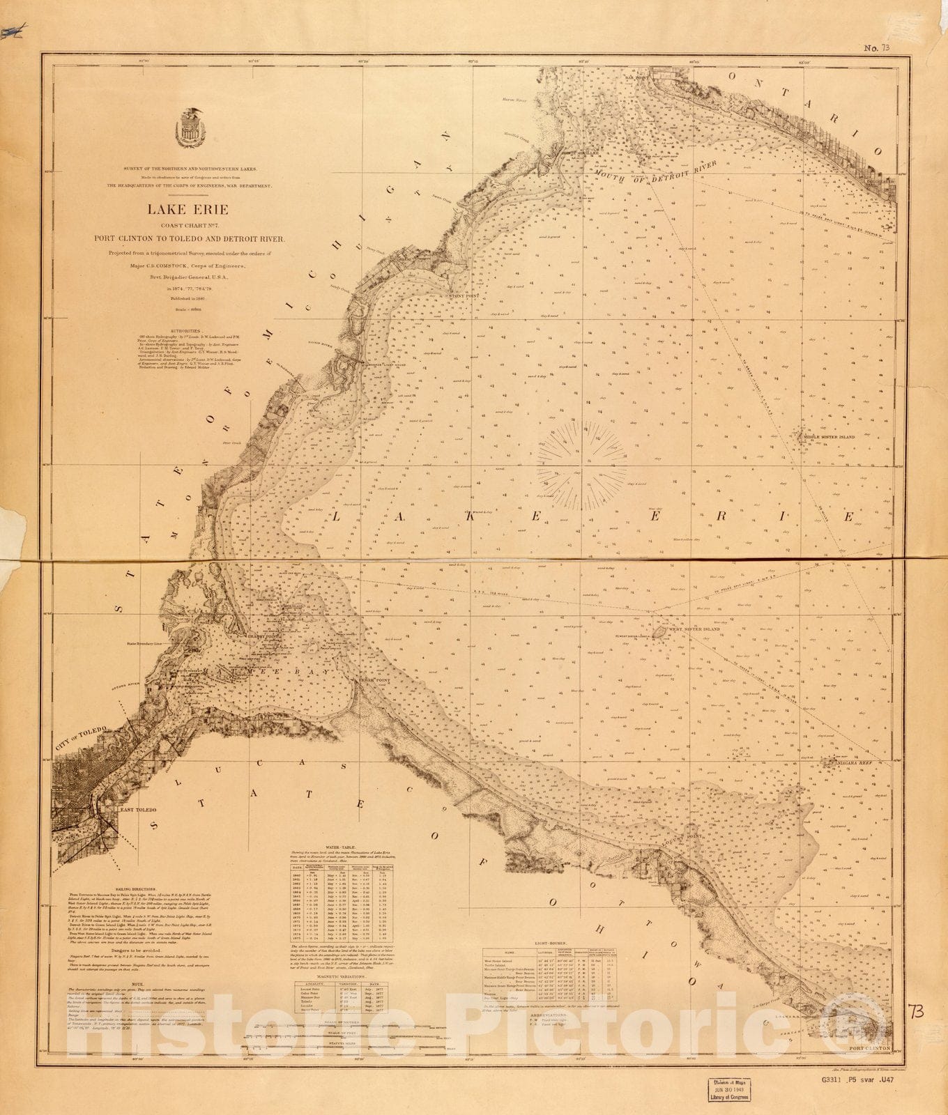 Map : Lake Survey Charts, Lake Erie coast chart no. 7 Port Clinton to Toledo and Detroit River, Antique Vintage Reproduction
