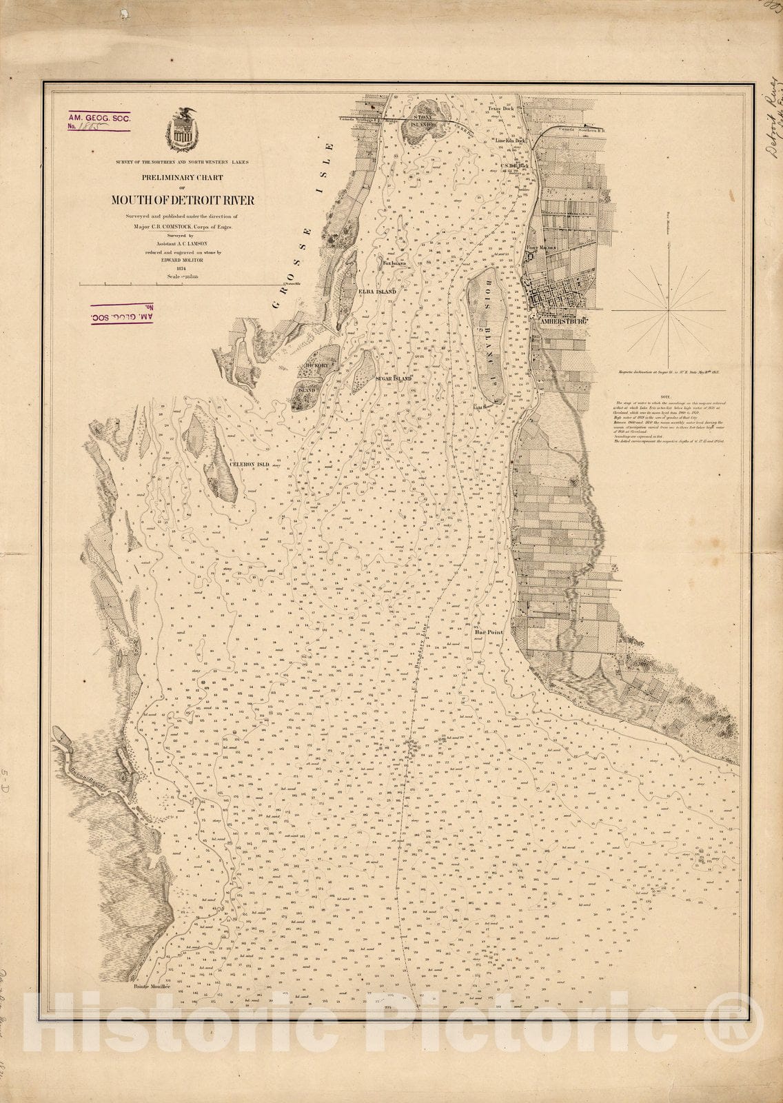 Map : Lake Survey Charts, Preliminary chart of mouth of Detroit River, Antique Vintage Reproduction
