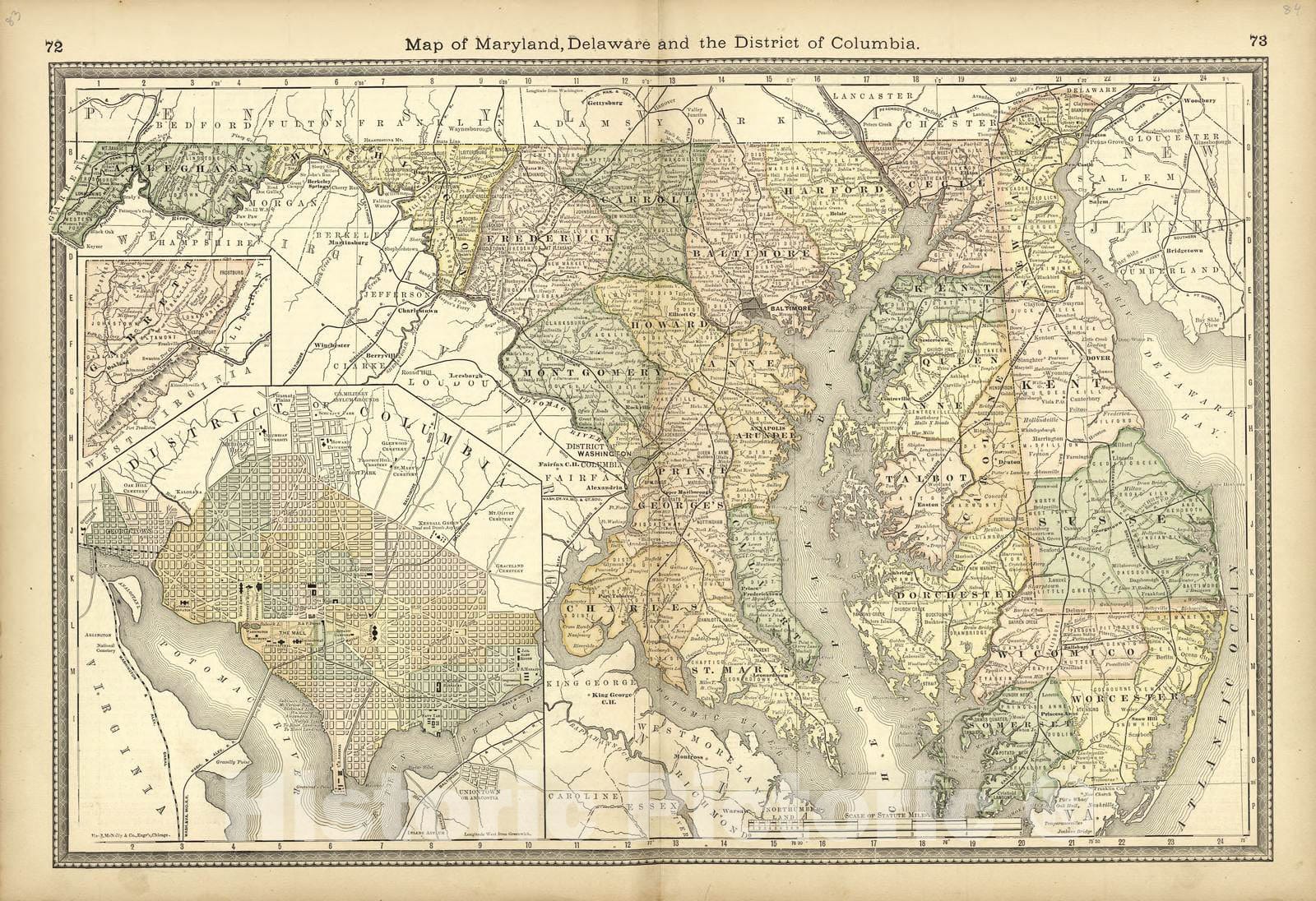 Historic 1882 Map - Historical Hand-Atlas, Illustrated - Map of Maryland, Delaware and The District of Columbia - Historical Hand Atlas, Illustrated, General & Local