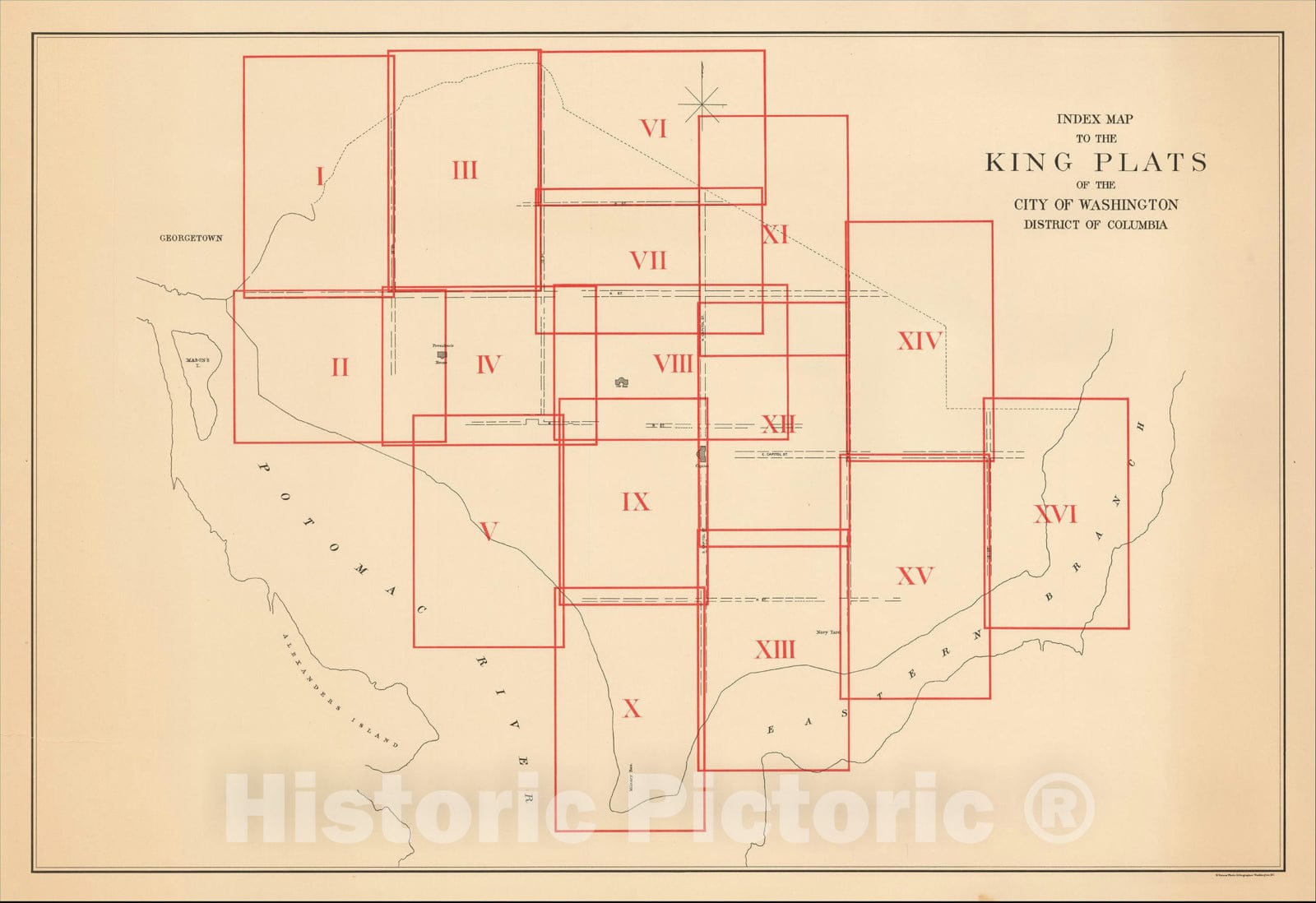 Historic Map : (Key Sheet) The King Plats of the City of Washington in the District of Columbia, 1803, 1846, Nicholas King, Vintage Wall Art