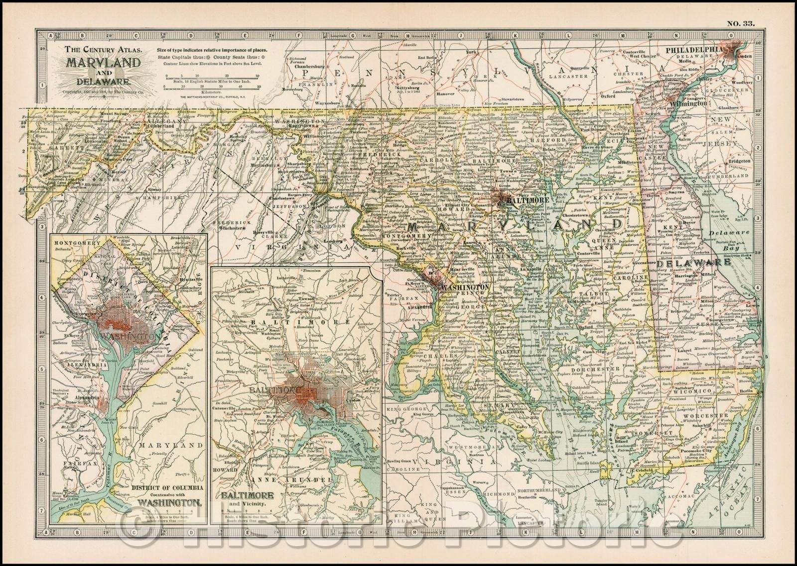 Historic Map - Maryland, Delaware, and District of Columbia, 1897, The Century Company - Vintage Wall Art