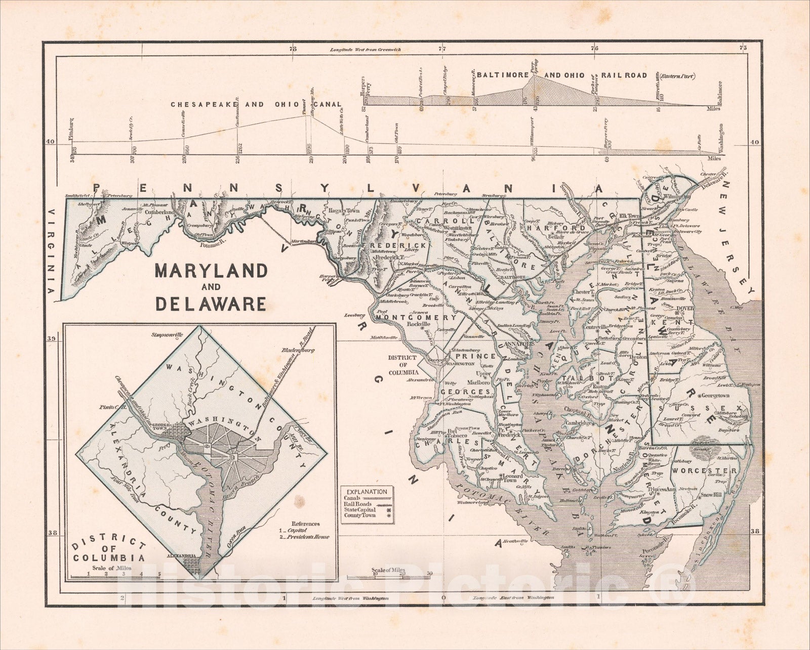 Historic Map : Maryland and Delaware [with Inset of the District of Columbia], 1844, Sidney Morse, Vintage Wall Art