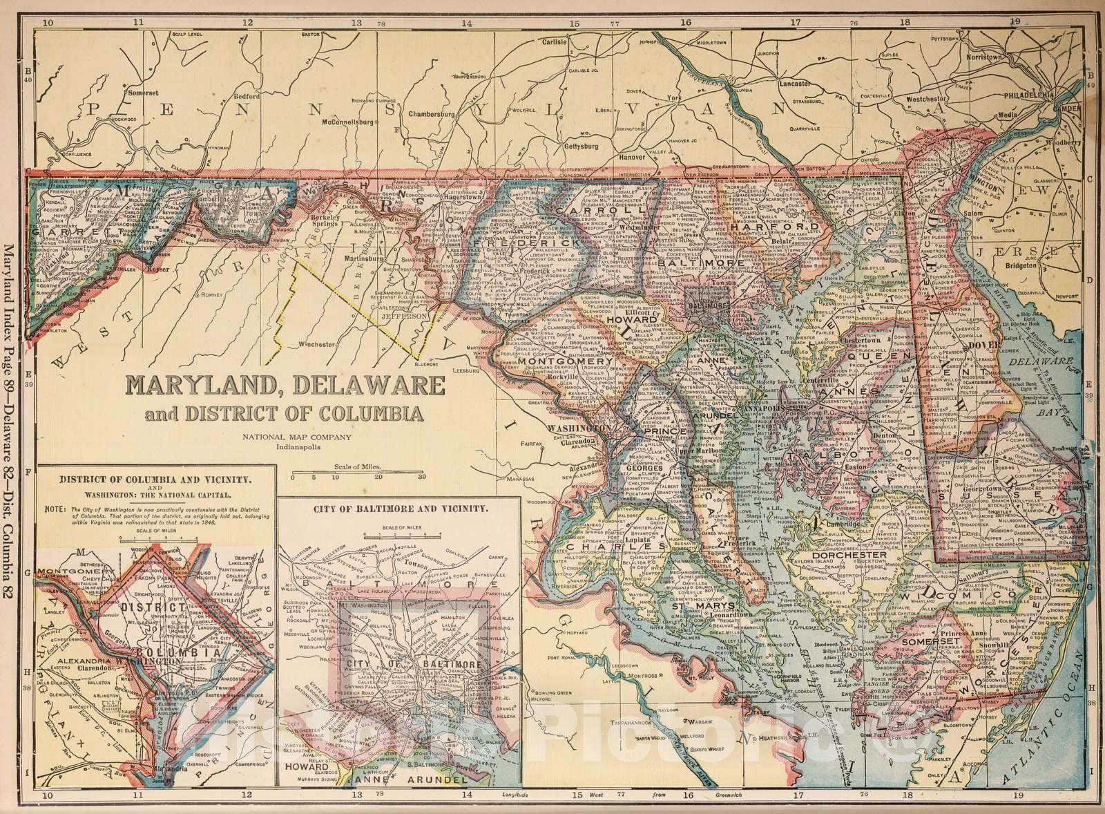 Historic Map : National Atlas - 1927 Maryland, Delaware and District of Columbia - Vintage Wall Art