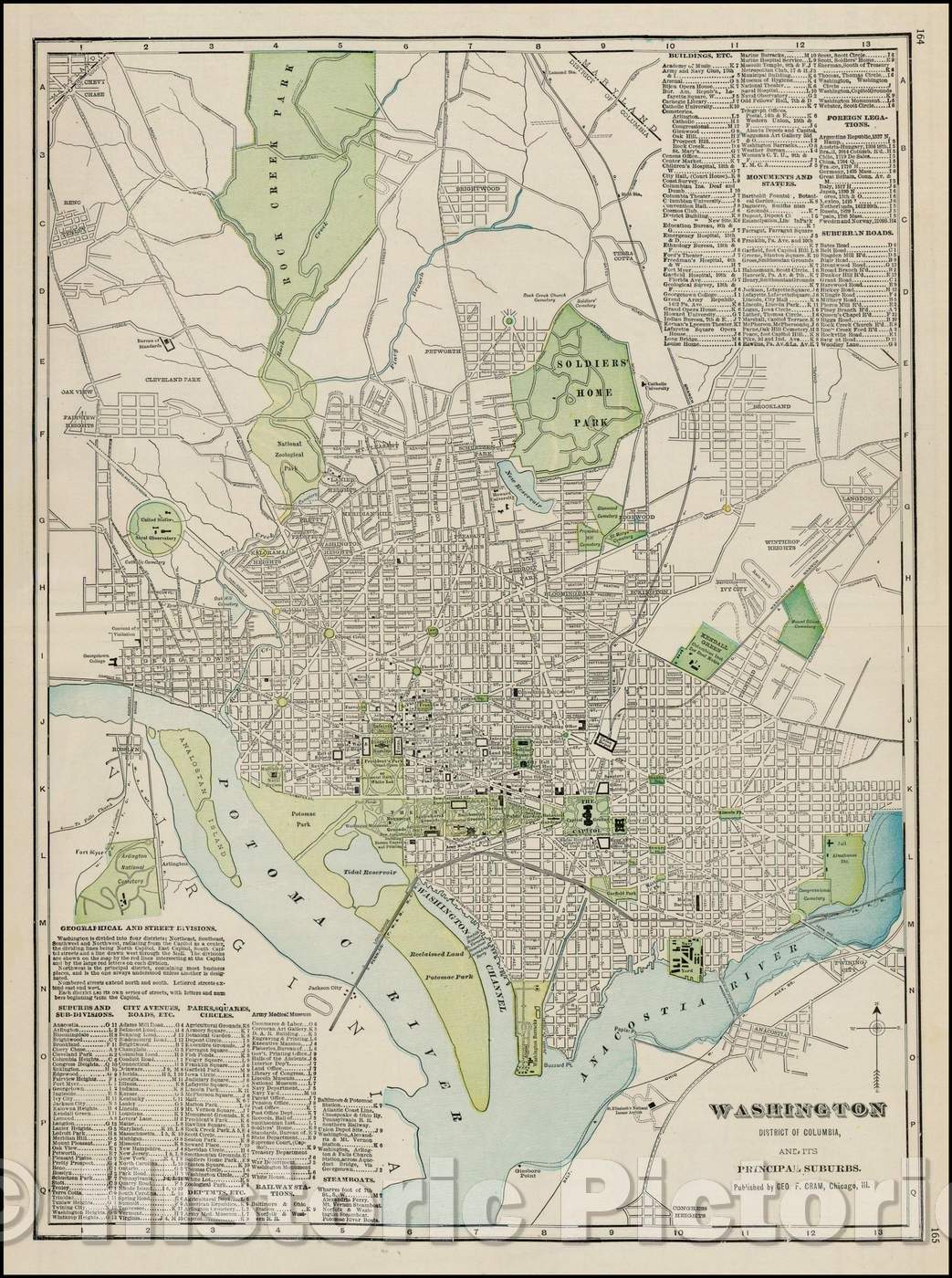 • .Historic Map - Washington District of Columbia, And Its Principal Suburbs, 1899, George F. Cram - Vintage Wall Art